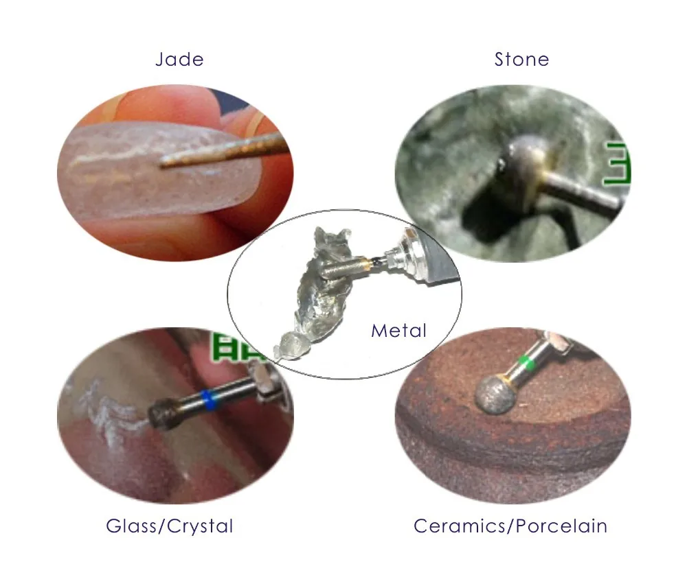 * Спеченные алмазные буры могут быть использованы стоматологическими лабораториями, ювелирными изделиями, лапидарными и драгоценными камнями.