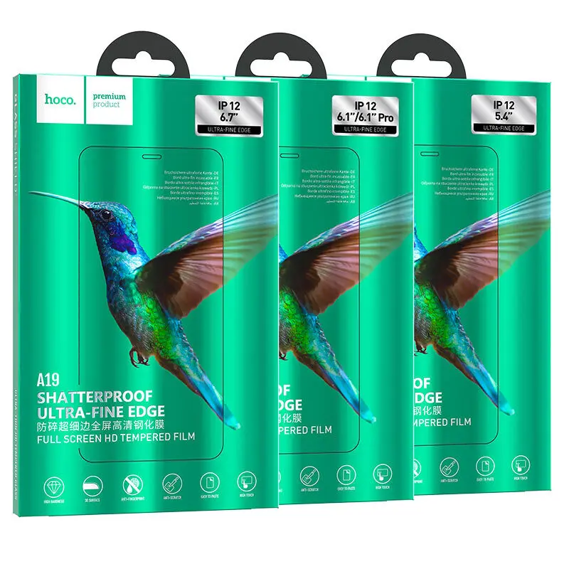 Защитное стекло Hoco для iPhone 12 6.1"/6.1"Pro (A19) Full Glue, черный цвет оконтовки.
