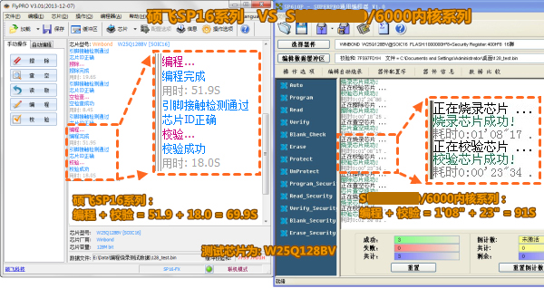 (Например, выберите 128 бит W25Q128, программист серии SP16: Программирование + проверка = 69,9 с, бренд 6000 серии: Программирование + проверка = 91 с)