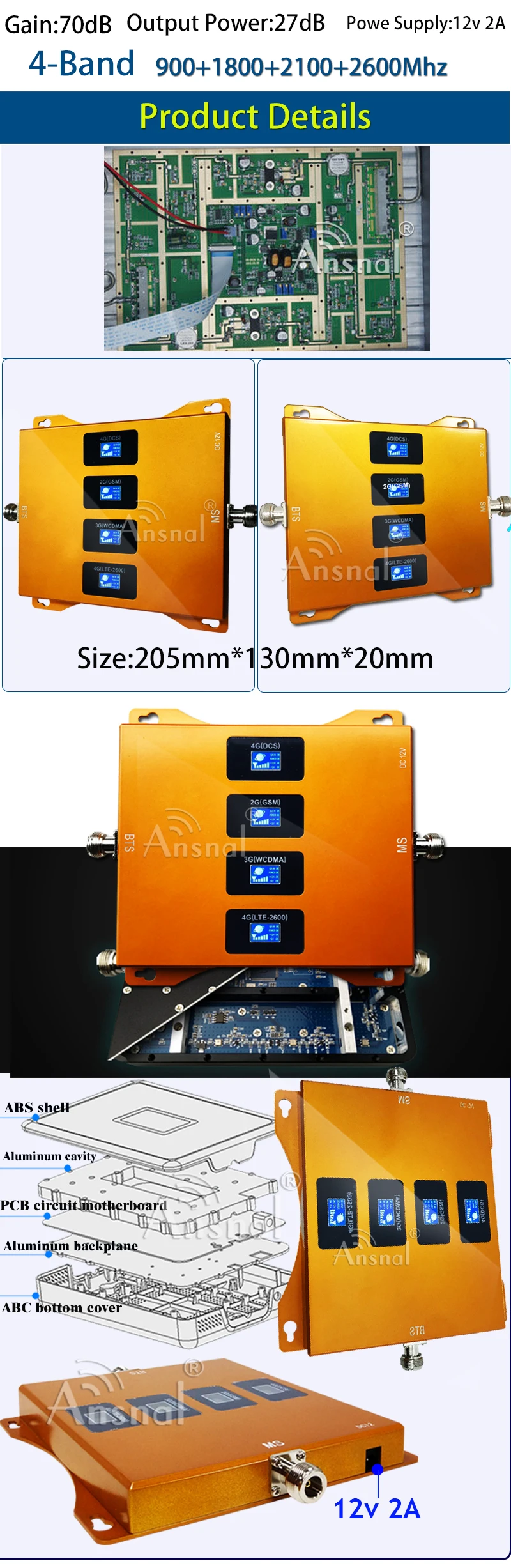 2. Улучшение 4G LTE800mhz 2G GSM 900mhz, 3G UMTS WCDMA 2100mhz,4G DCS LTE 1800mhz LTE2600mhz одновременно.