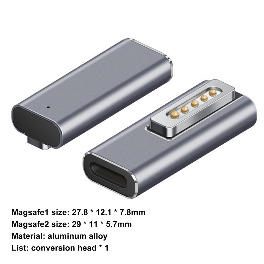 Adapter Converter PD Quick Charge Aluminum Alloy Type-C to Mag-safe 1/2 Magnetic Charging Connector for MacBook Air/Pro