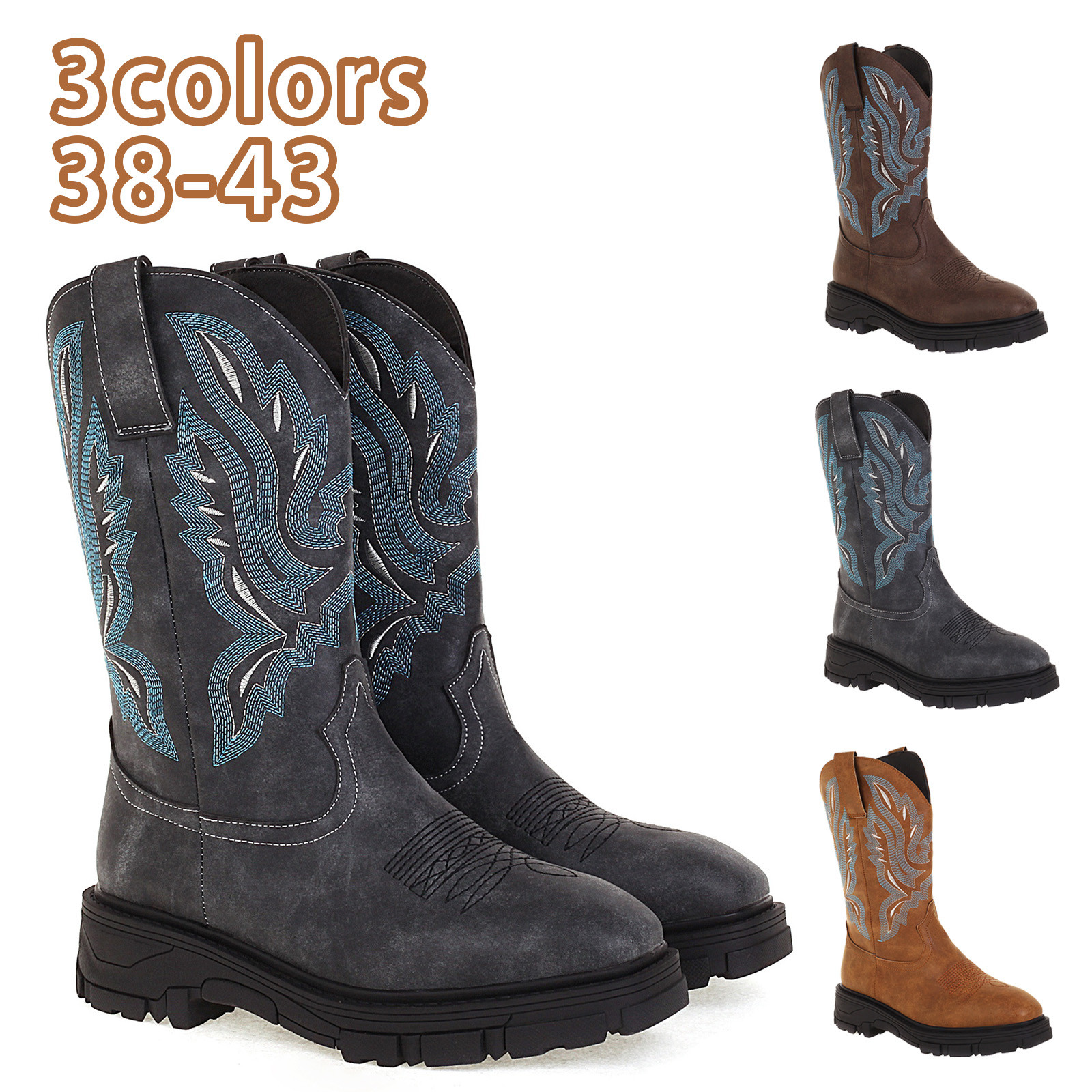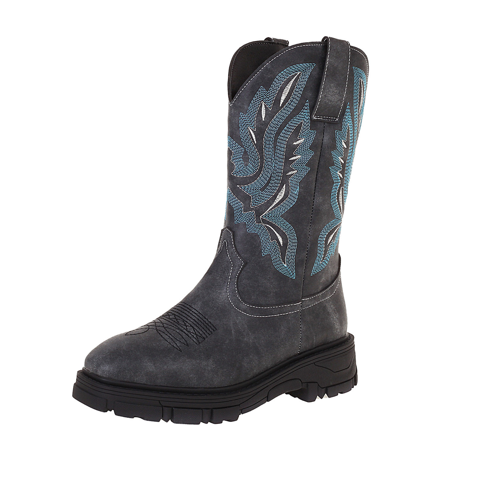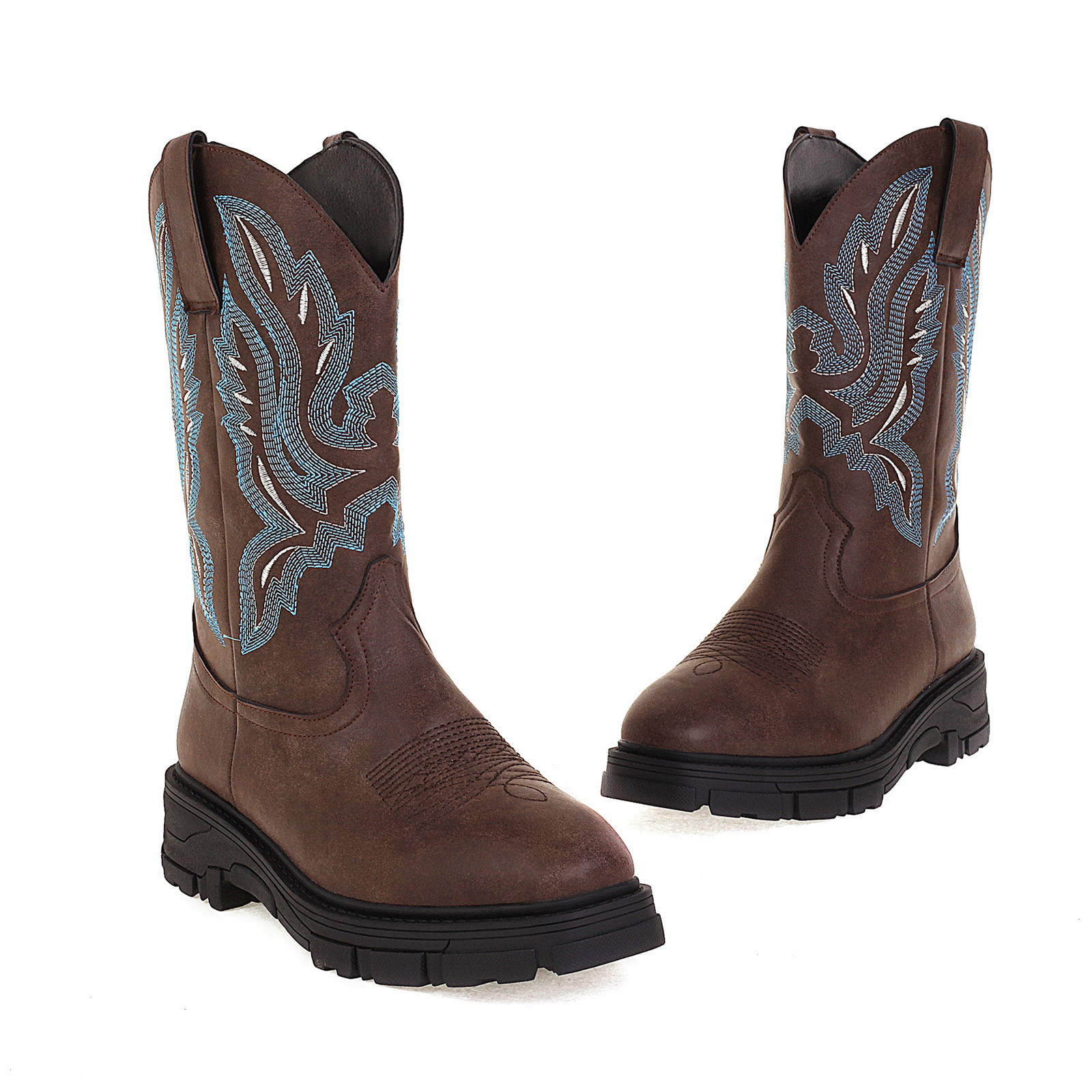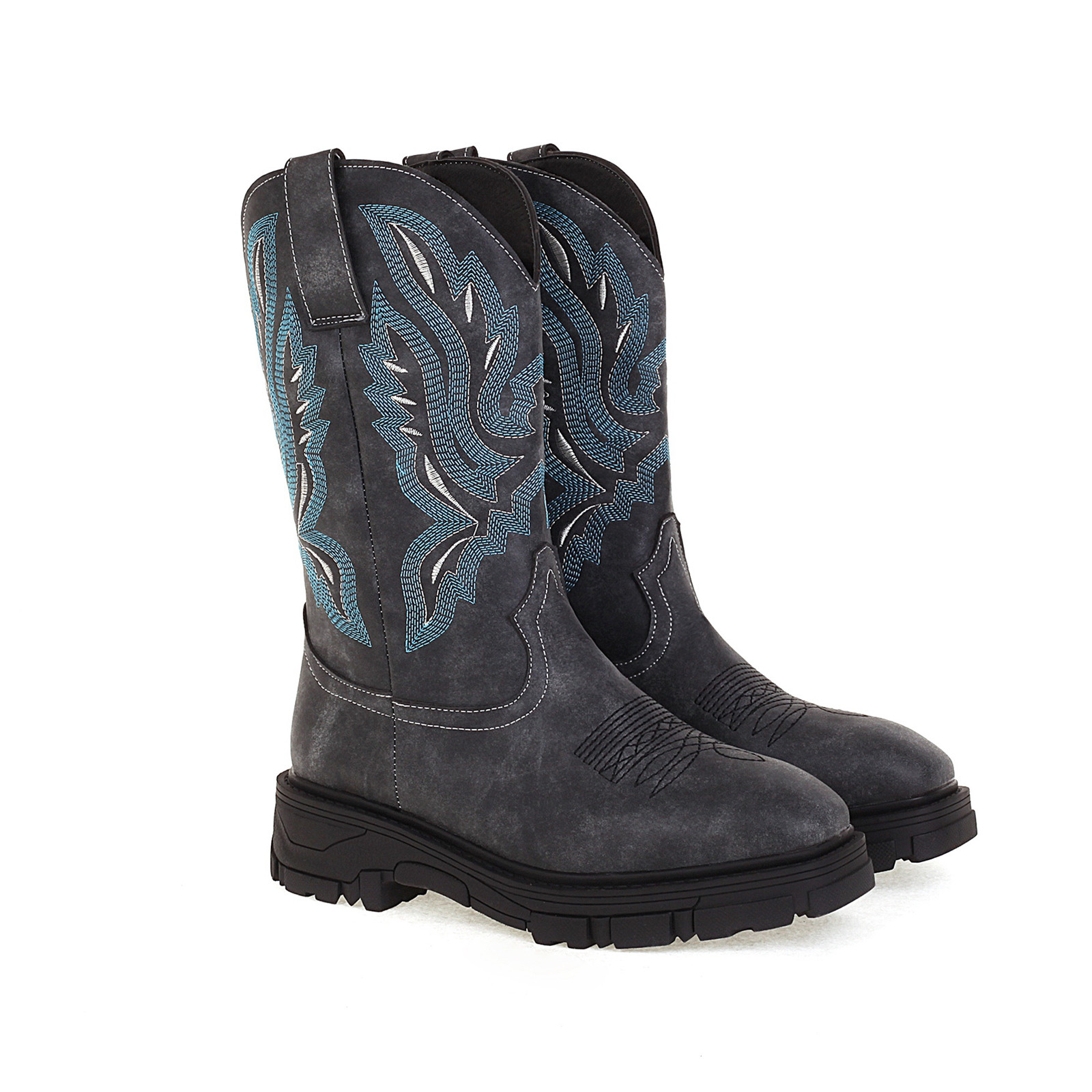 Мужские кожаные ботинки с вышивкой в стиле ретро; Ботинки средней длины с круглым носком на толстой подошве