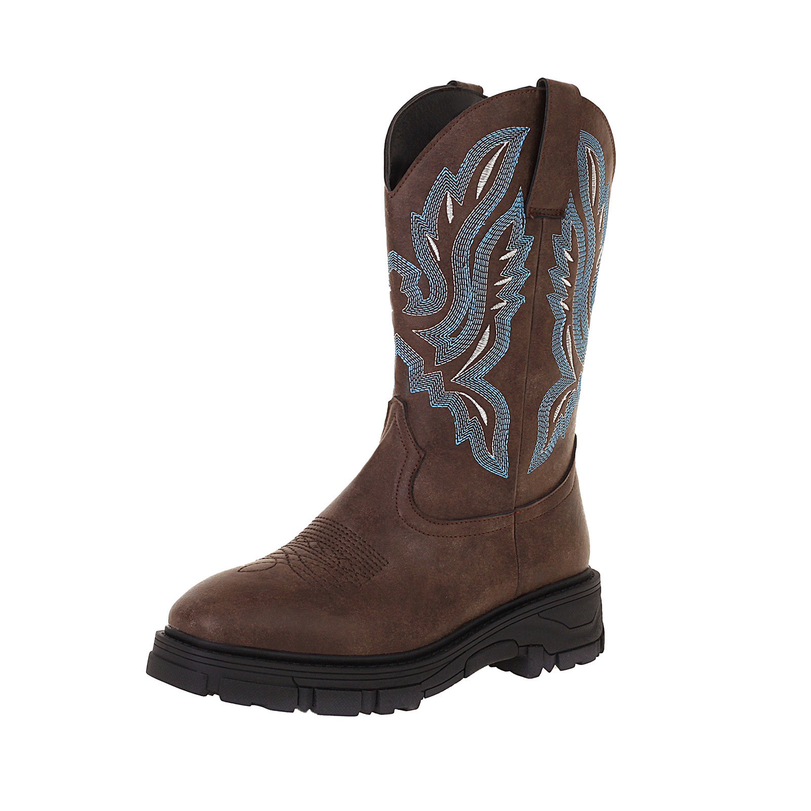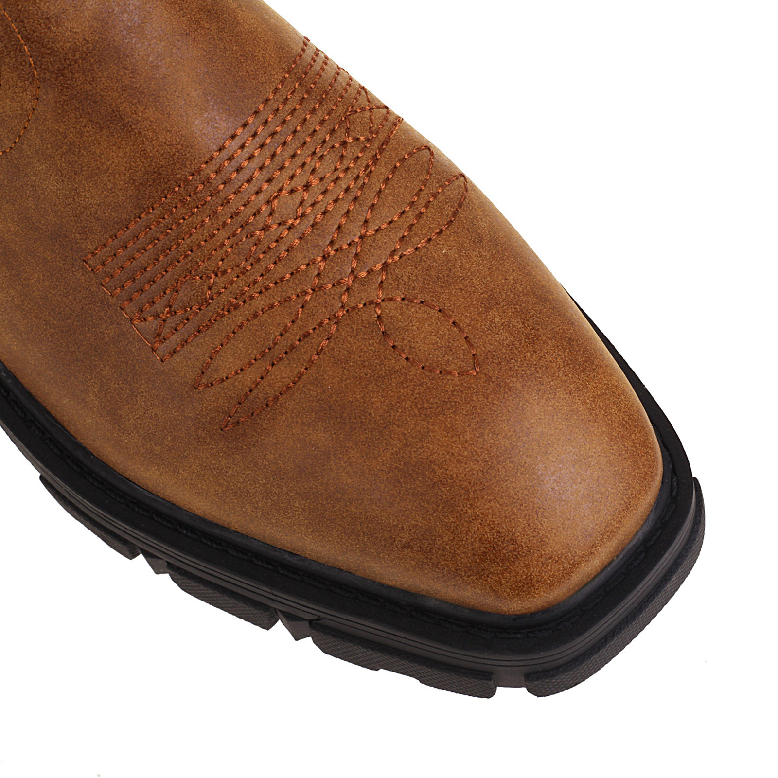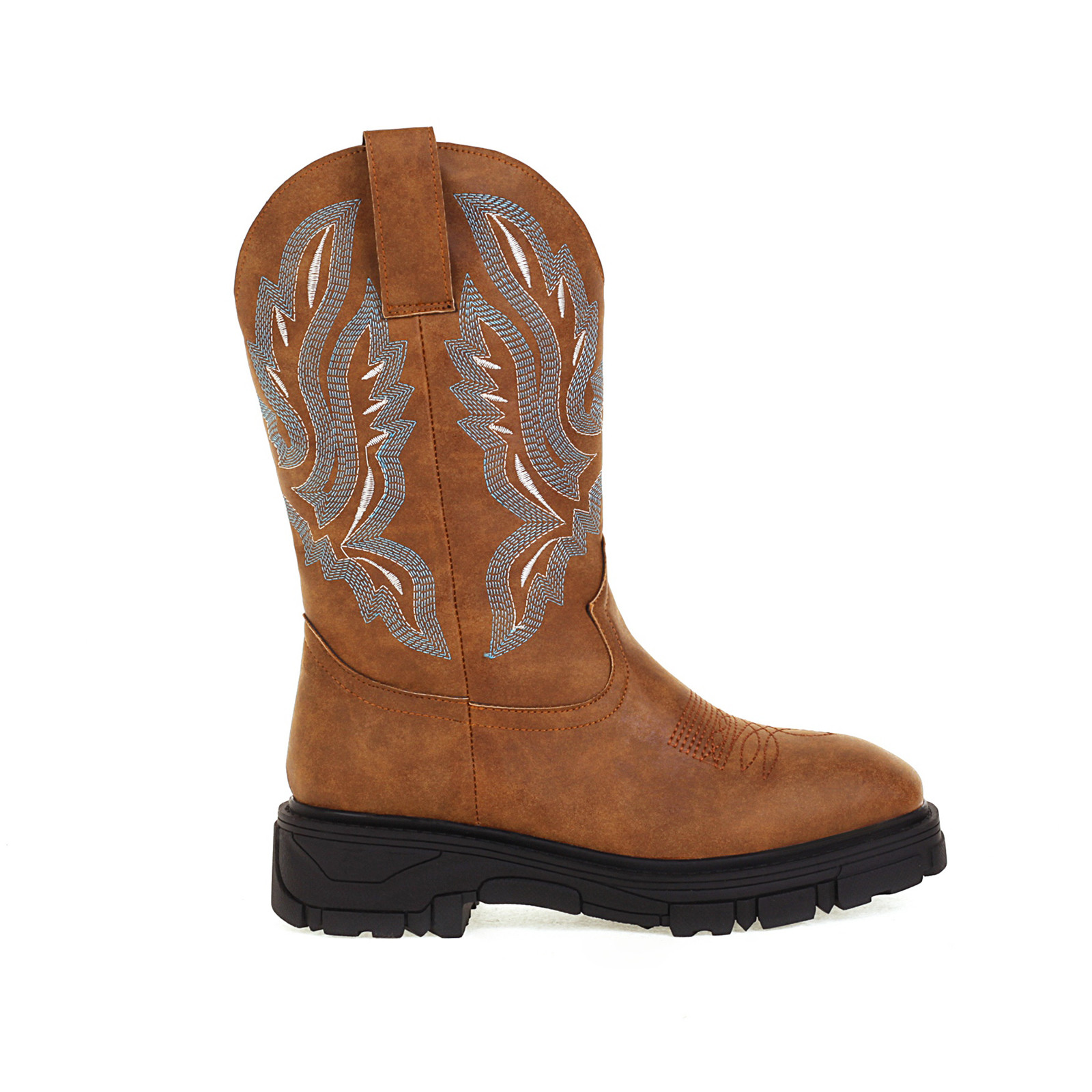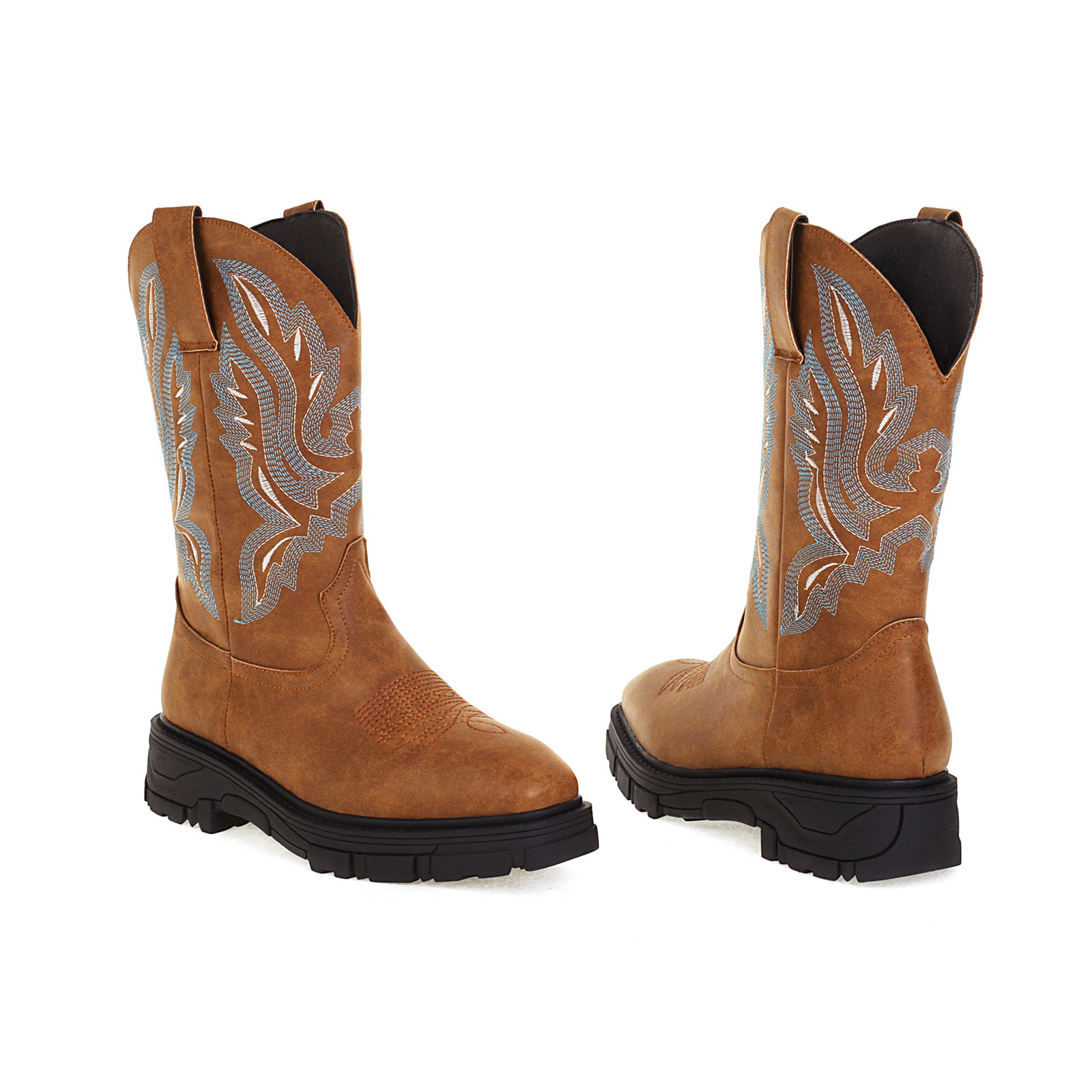 Мужские кожаные ботинки с вышивкой в стиле ретро; Ботинки средней длины с круглым носком на толстой подошве