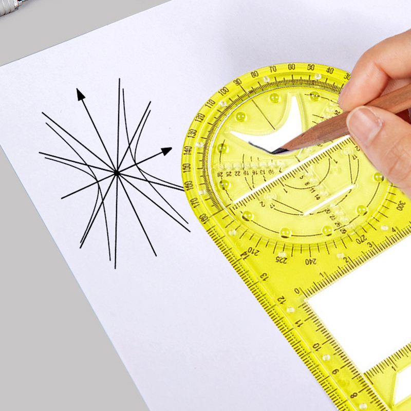 4. Дизайн: геометрические фигуры различных форм помещаются на линейке, которая очень удобна для переноски, может удовлетворить ваши различные потребности в ежедневном использовании и удобна для измерения.