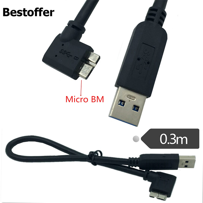 Кабель передачи данных для цифровой камеры USB 3,0 A к Micro B штекер 90 градусов левый угол OTG короткий кабель 30 см