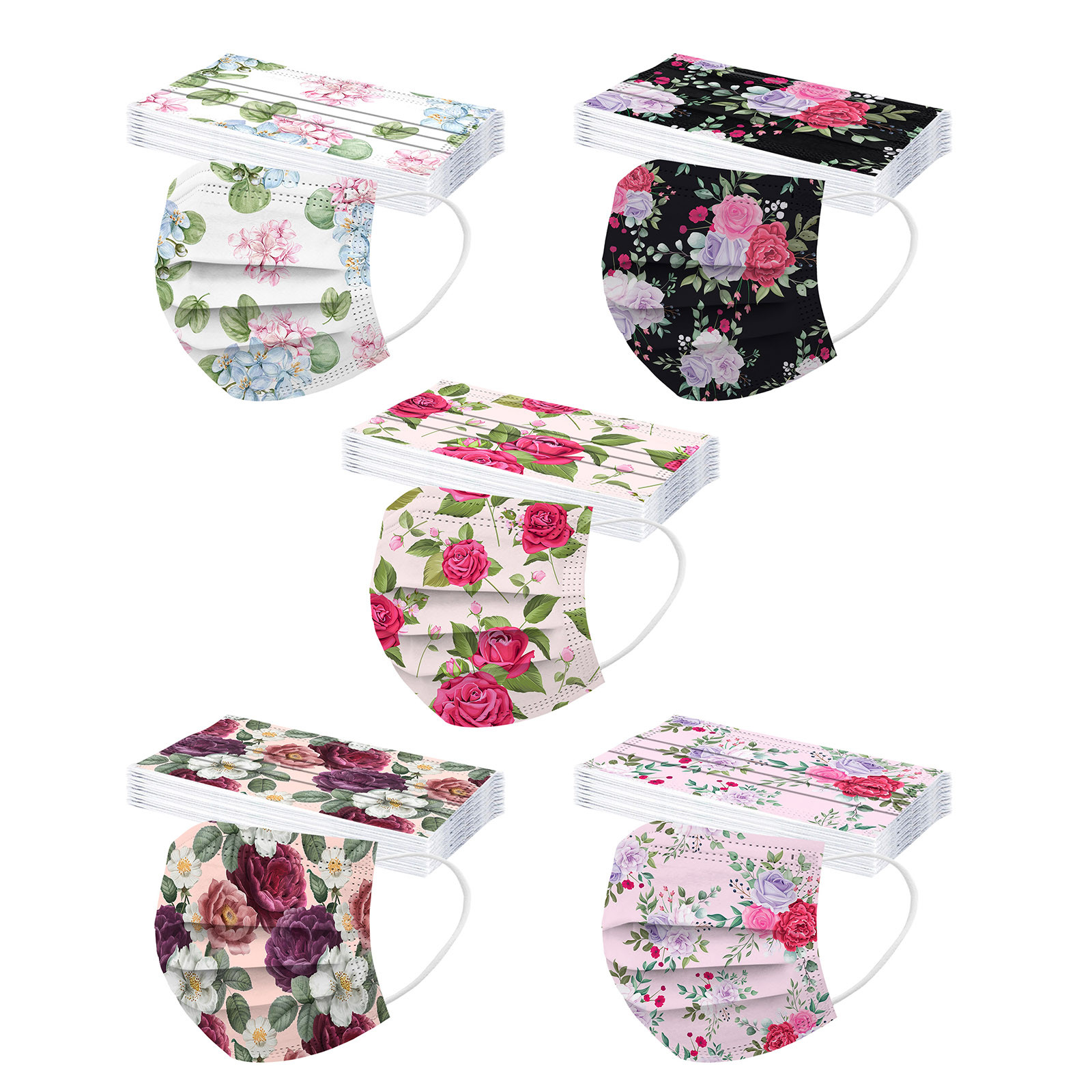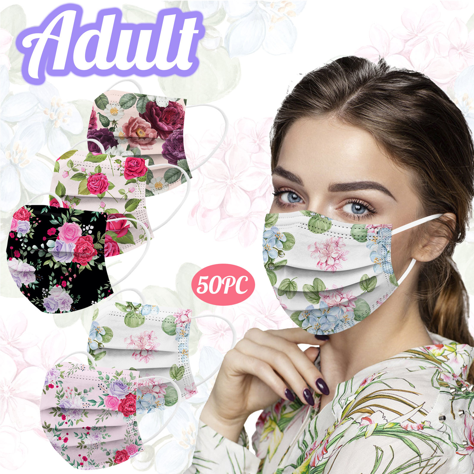 50 шт одноразовые нейтральные маска с цветочным узором одноразовые Мягкая тонкая маска для взрослых 3-Слои маска