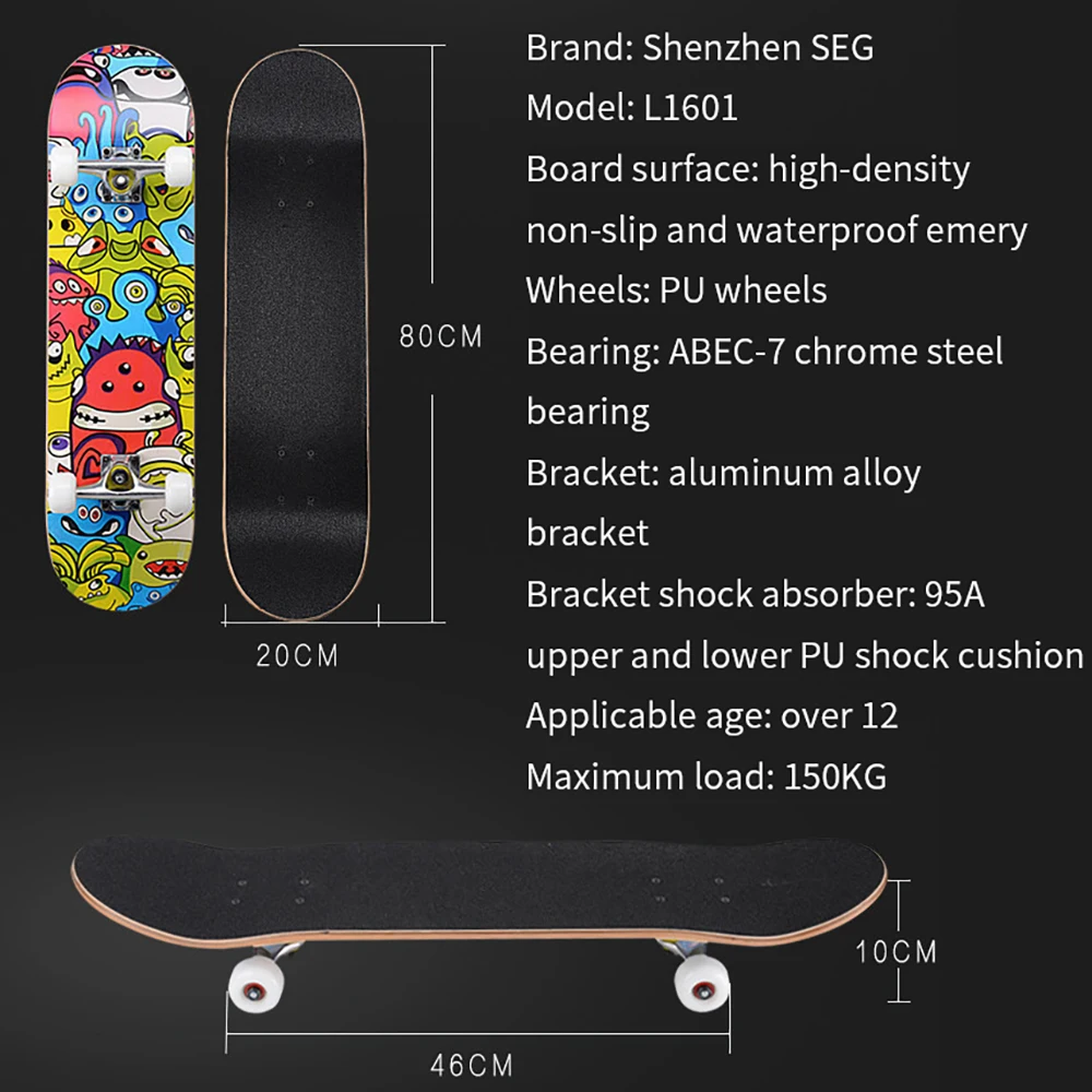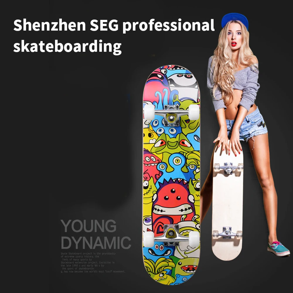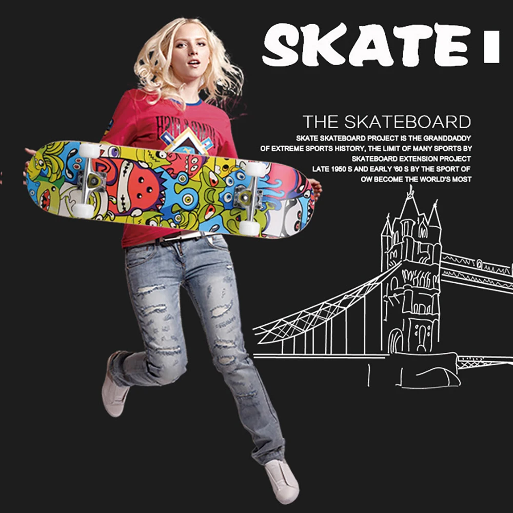 31 дюйм скейтборд Road взрослых кисточки улица клен двойной наклон четырёхколёсный вагончик с начинающих двойным рокером 3108 вогнутой скейтборд