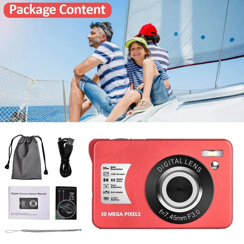 HD 1080P Цифровая камера 30 Мп мини 2,7 дюймовый ЖК-экран камера с 8-кратным цифровым зумом, компактные камеры для взрослых, подростков