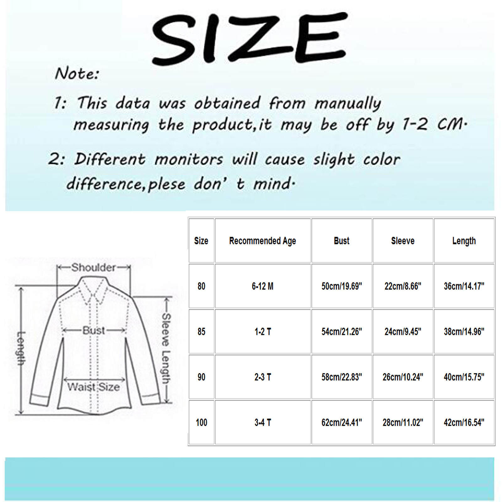 Размеры Рекомендуемый возраст Бюст Рукав Длина 80 6-12 м 50 см/19,69'' 22 см/8,66'' 36 см/14,17'' 85 1-2 T 54 см/21,26'' 24 см/9,45'' 38 см/14,96'' 90 2-3 T 58 см/22,83'' 26 см/10,24'' 40 см/15,75'' 100 3-4 T 62 см/24,41'' 28 см/11,02'' 42 см/16,54''