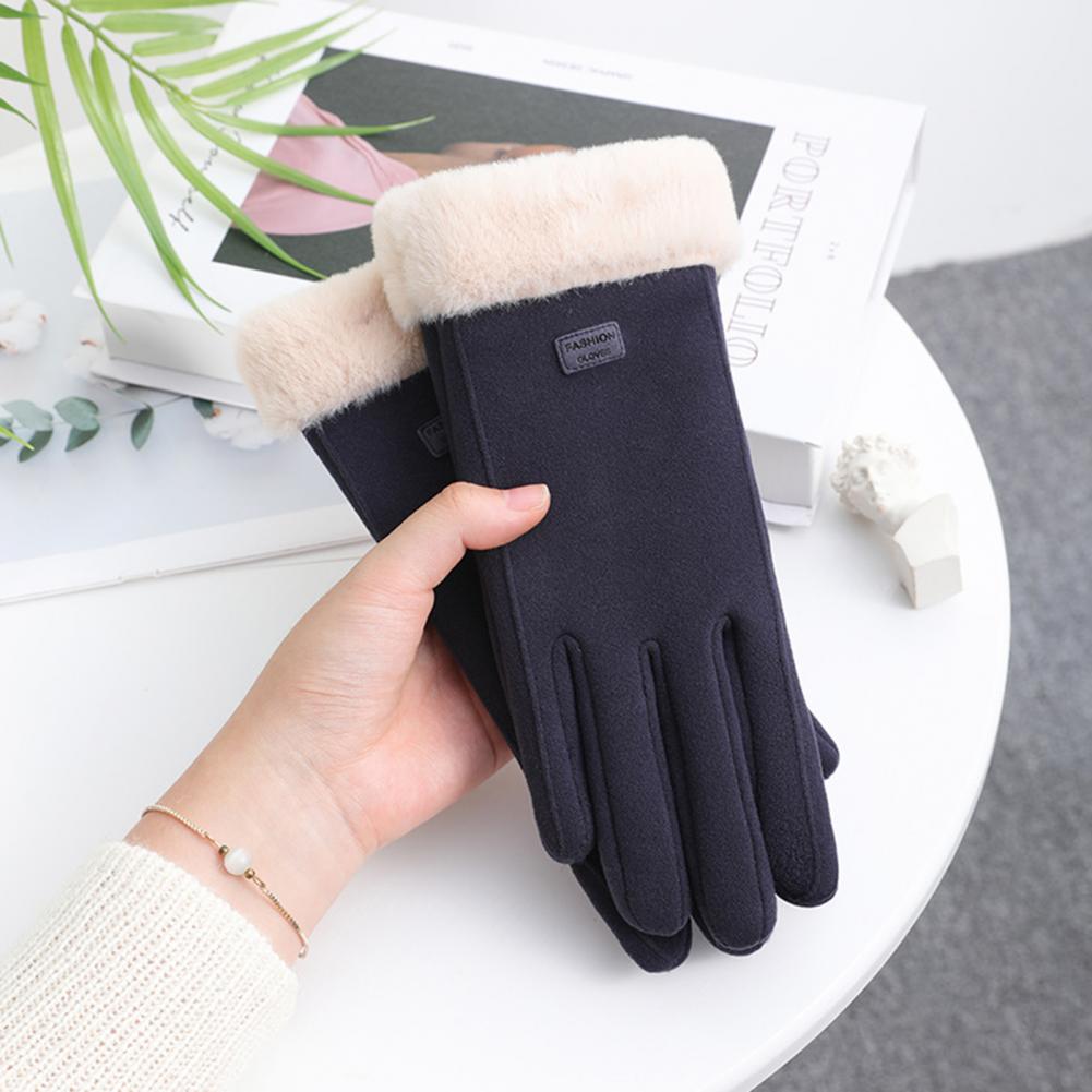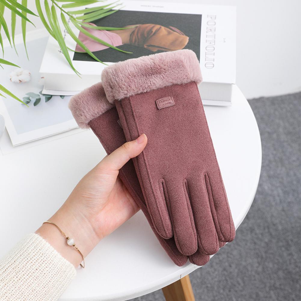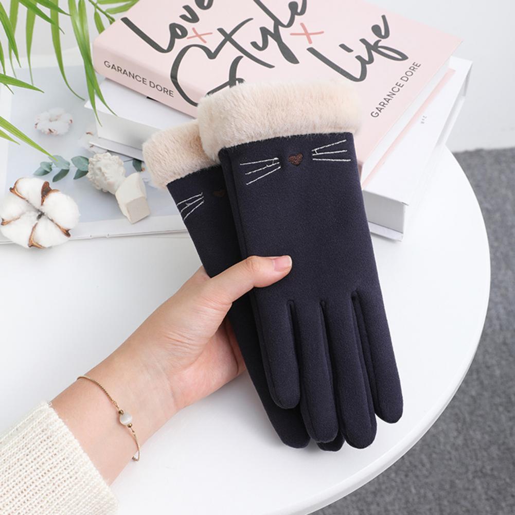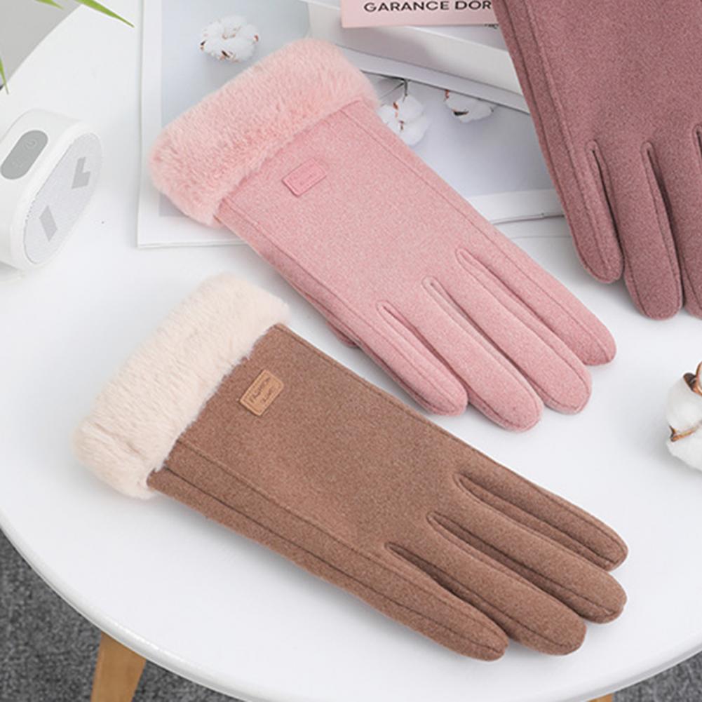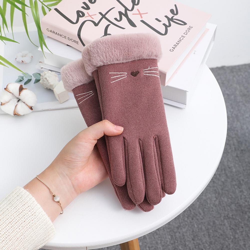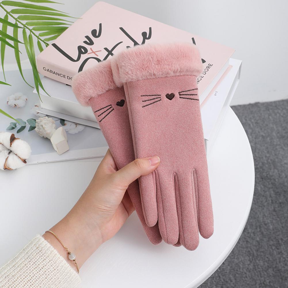 Осенне-зимние женские тонкие теплые однослойные ветрозащитные велосипедные перчатки с бантиком, милые эластичные перчатки