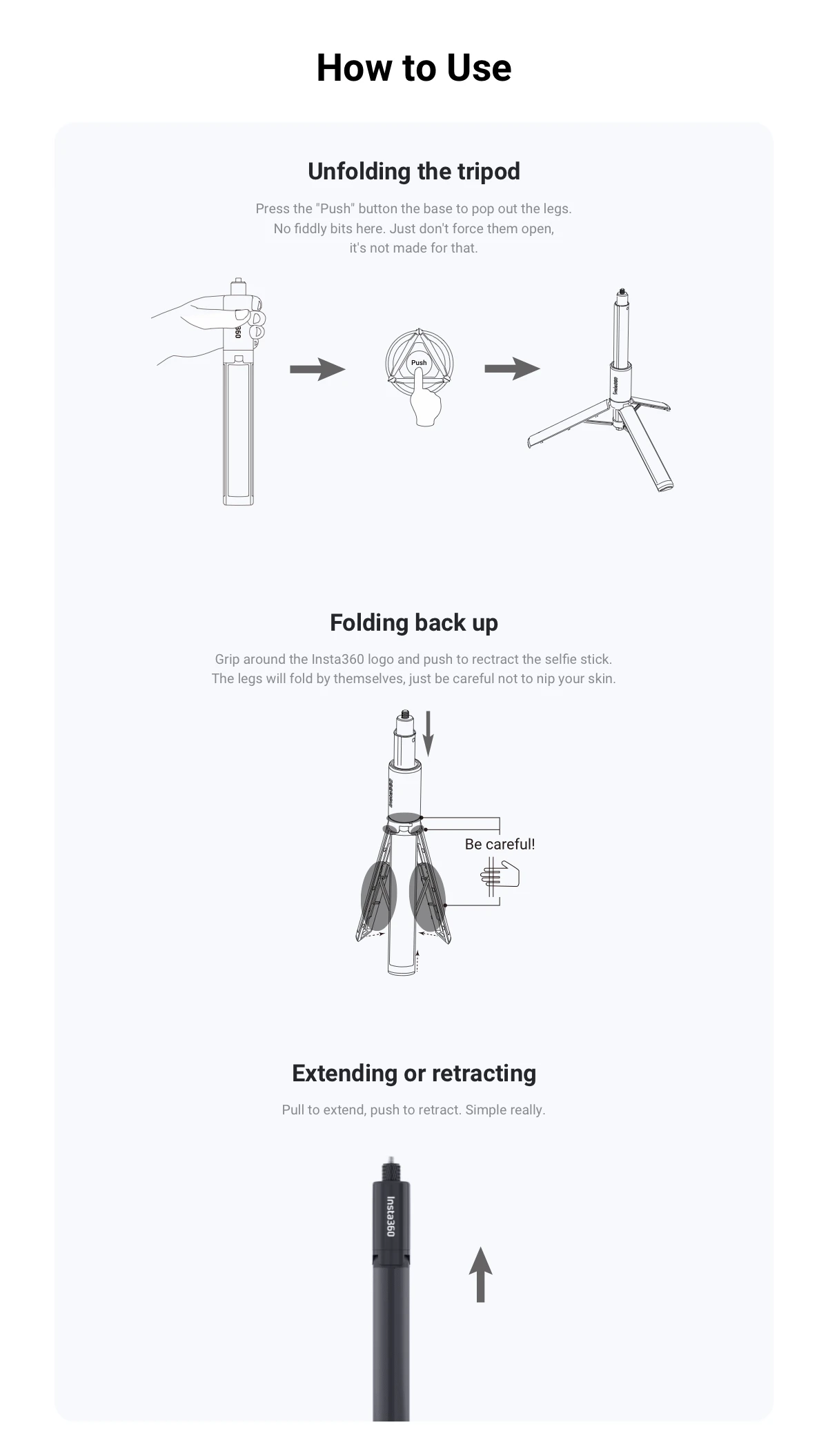 2. Двойное использование: Используйте в качестве невидимой селфи-палки или Сложите встроенный Штатив для настройки и съемки.