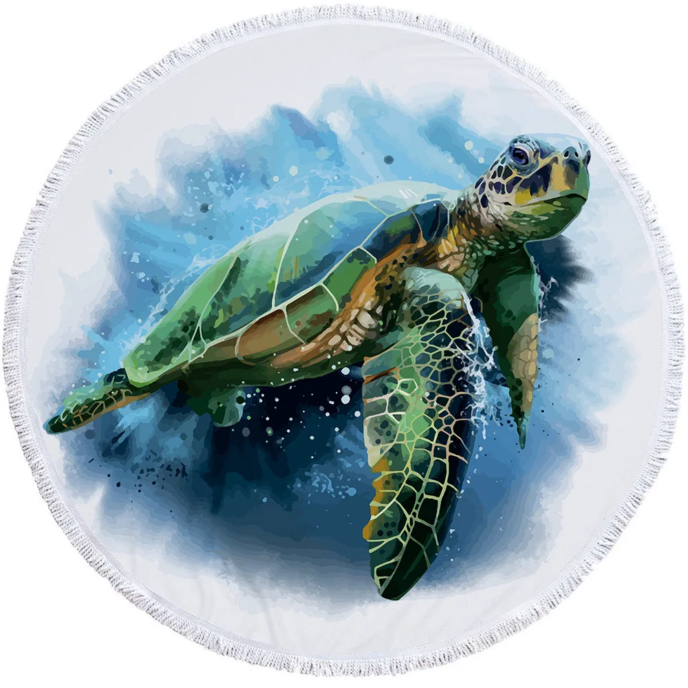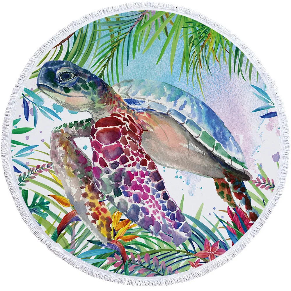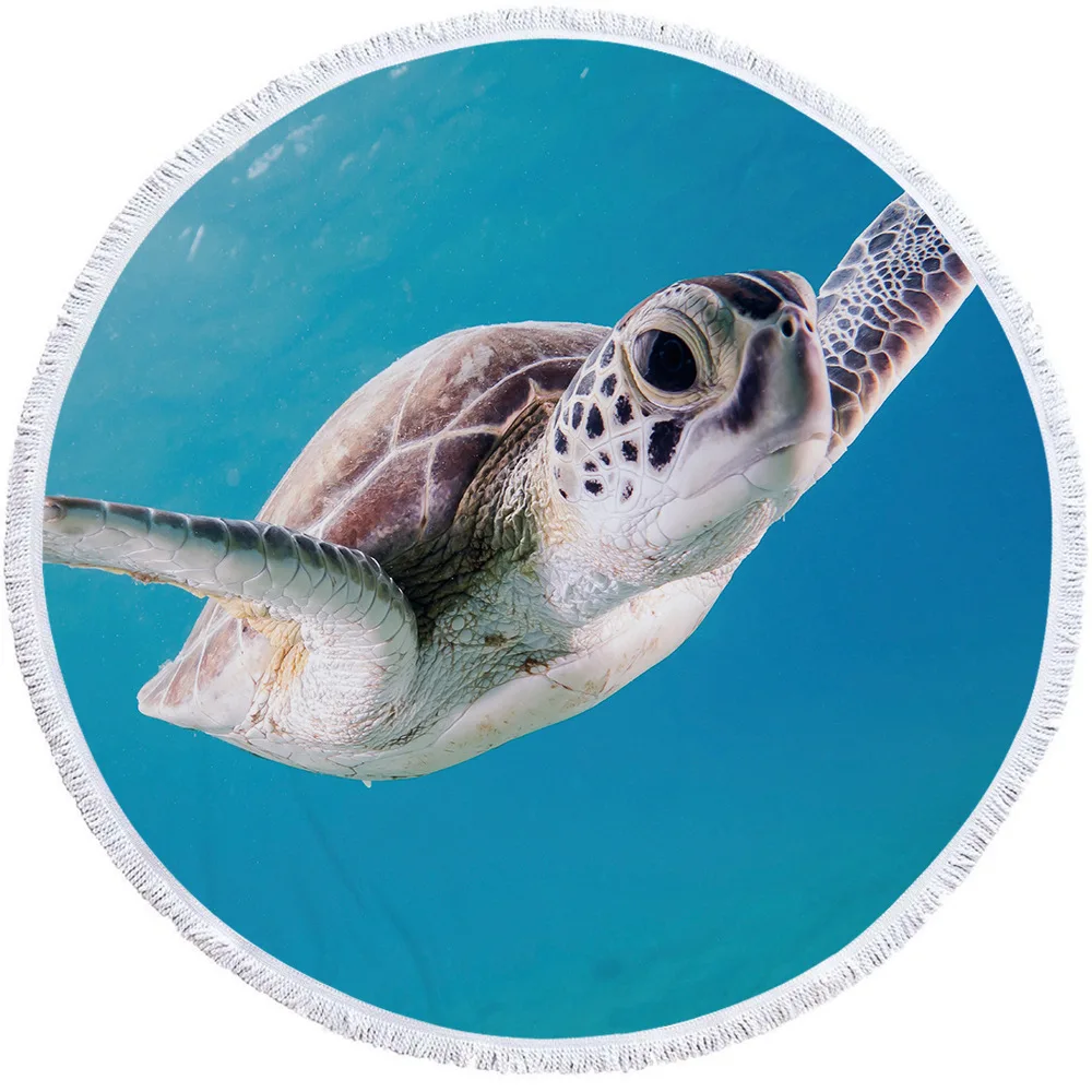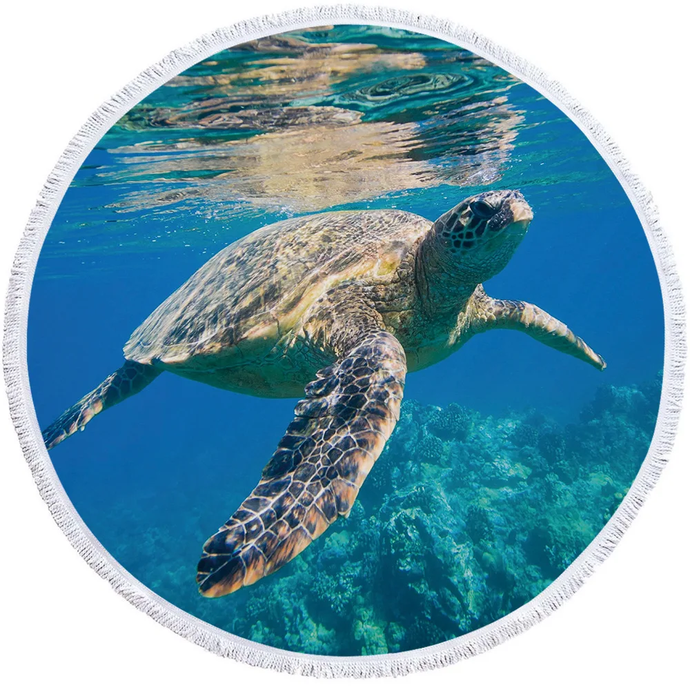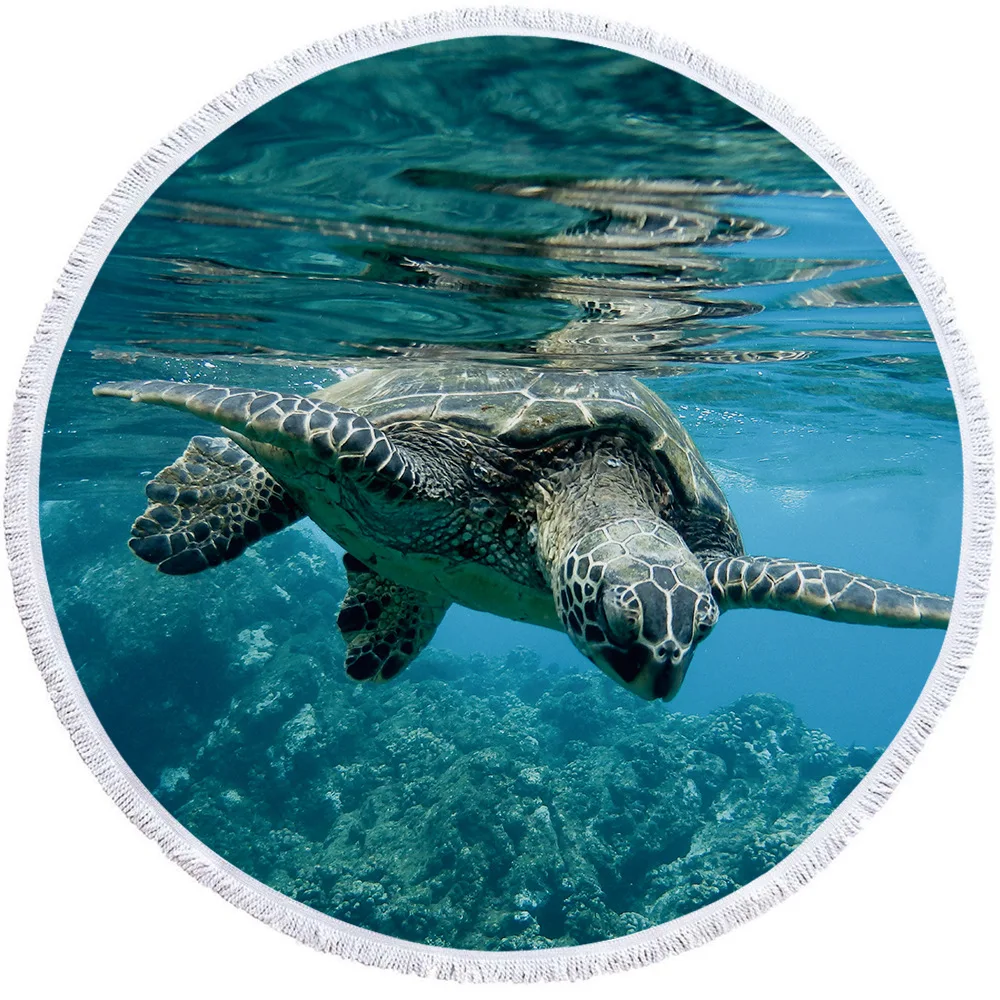 Микрофибра 3D печать морская черепаха пляжное полотенце круглый большой акварельный Йога полотенце с кисточкой пляжный коврик покрывало