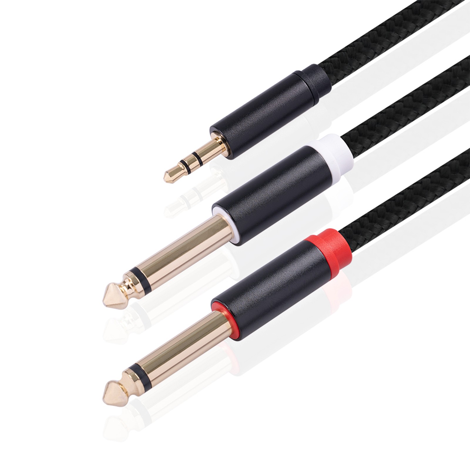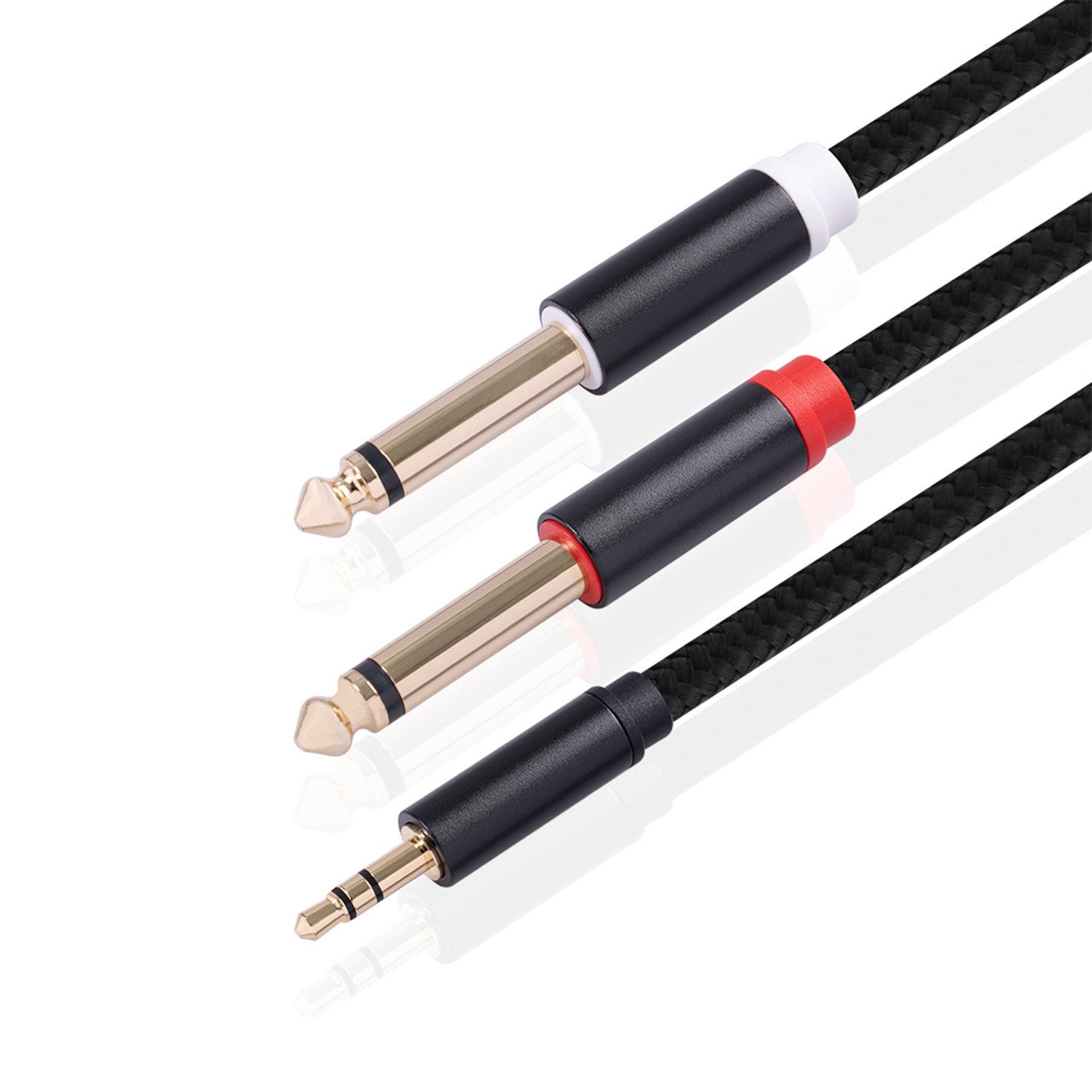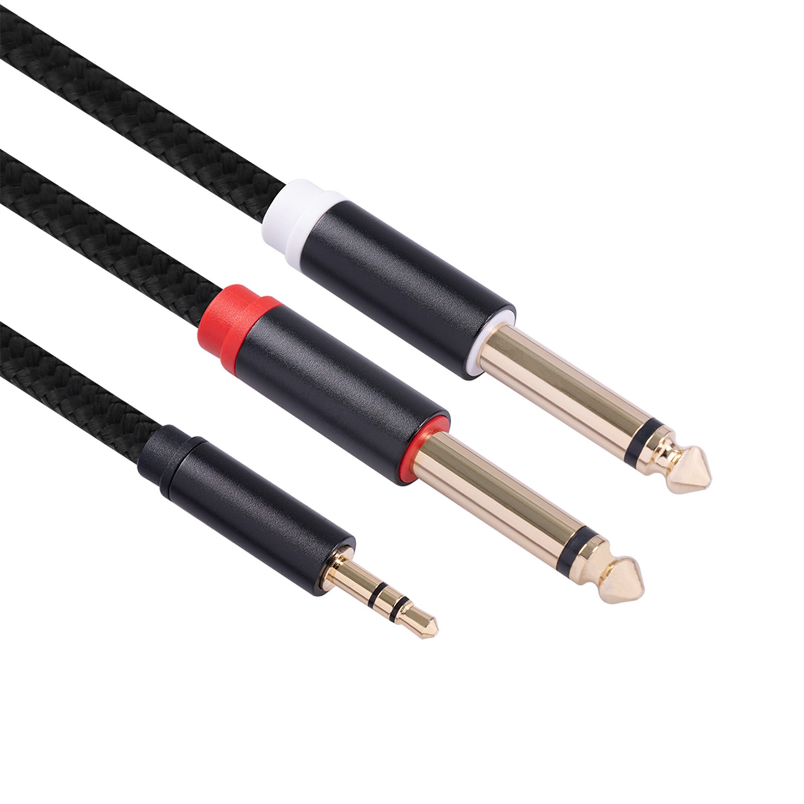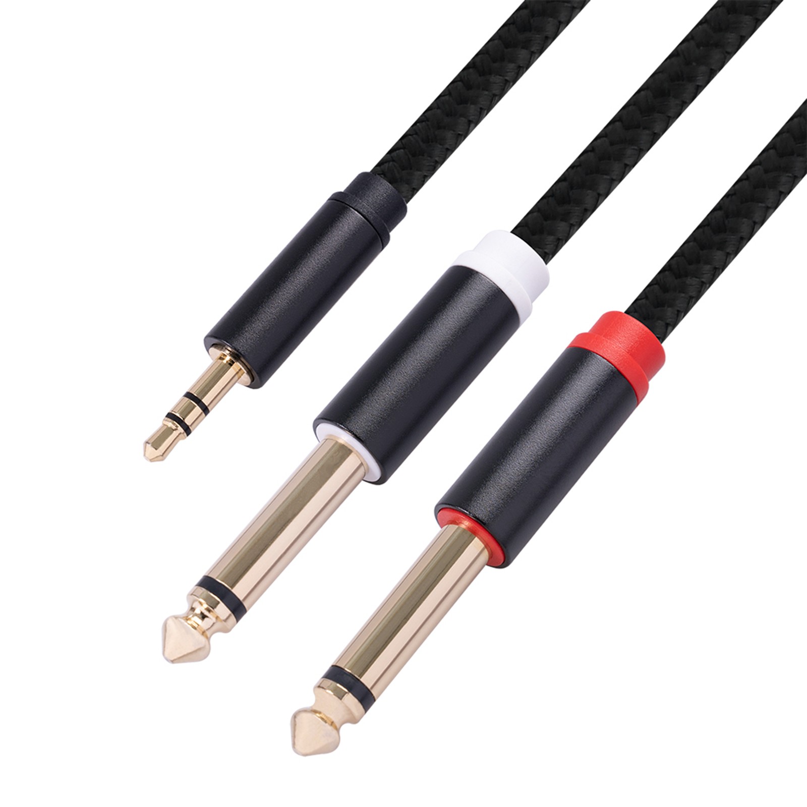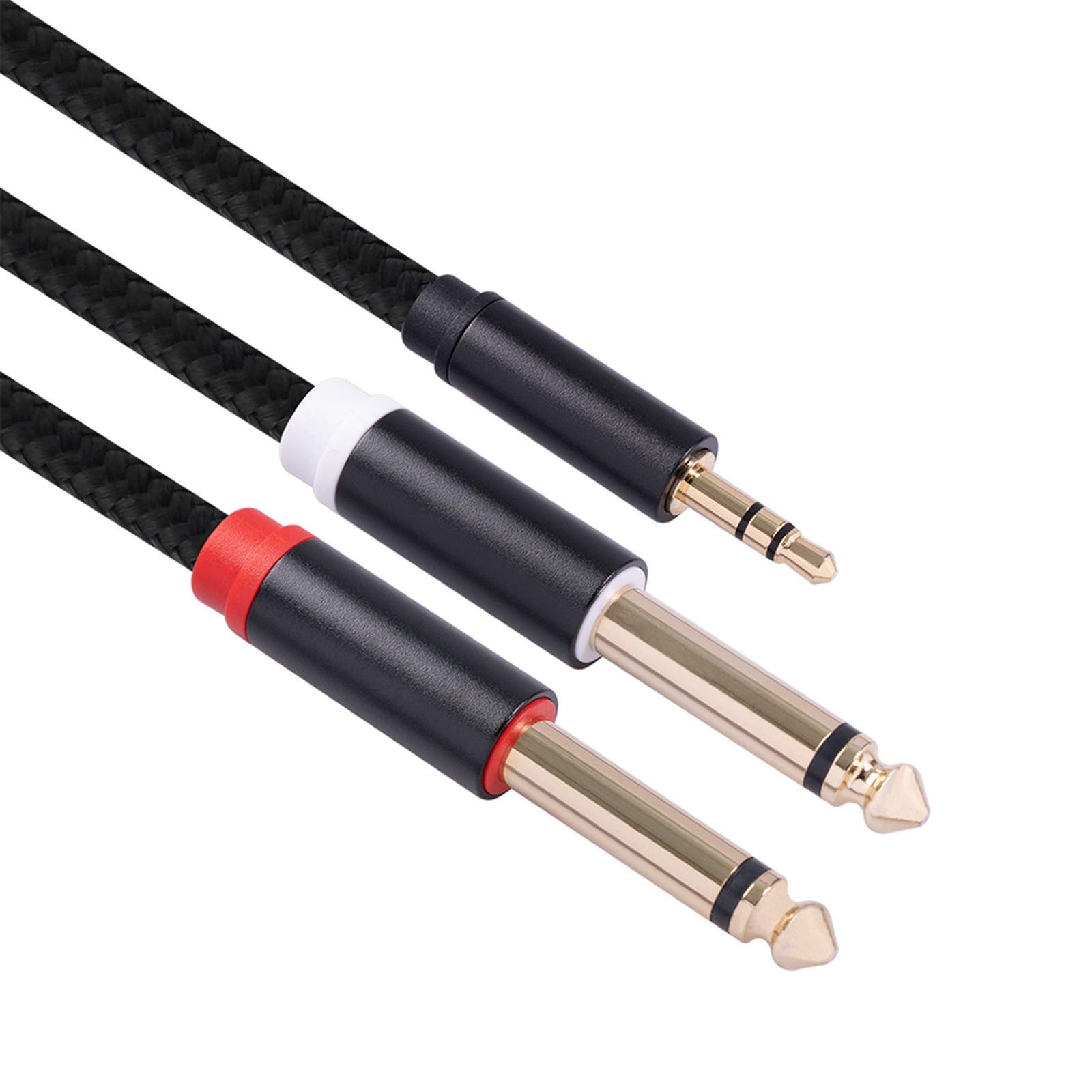 Позолоченный штекер, хорошая контактная производительность, защита от окисления С хлопковой тканой сеткой, она имеет сильную прочность на растяжение и красивый внешний вид Корпус изготовлен из окислительного сплава алюминия, который имеет хорошее ощущение руки, прочный и долговечный Доступны различные длины, подходят для различных случаев 3,5 стерео двойной 6,35 подойдет как для повседневной носки, так кабель, данный кабель используется для подключения вашего смартфона, портативный медиаплеера, ноутбук/ПК или другое устройство с 3,5 мм интерфейс jack выход 2x6,35 мм Джек Вход устройств, таких, как колонки, смешивая консолей и т. д Этот кабель может использоваться для разделения 3,5 мм несимметричный стереосигнала во двух 6,35 TS (слева/справа) несимметричный подойдет как для повседневной носки, так сигналов или скомбинировать два 6,3 подойдет как для повседневной носки, так сигналы (слева/справа) В рамках одного 3,5 мм стерео сигналаХарактеристики: