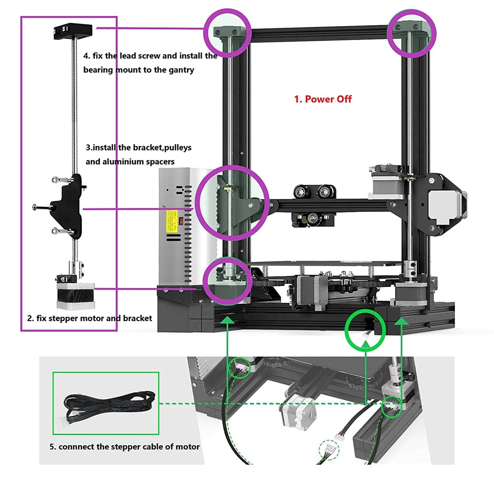 5) Установите двойной шаговый кабель Z на материнскую плату и Подключите два Z мотора.