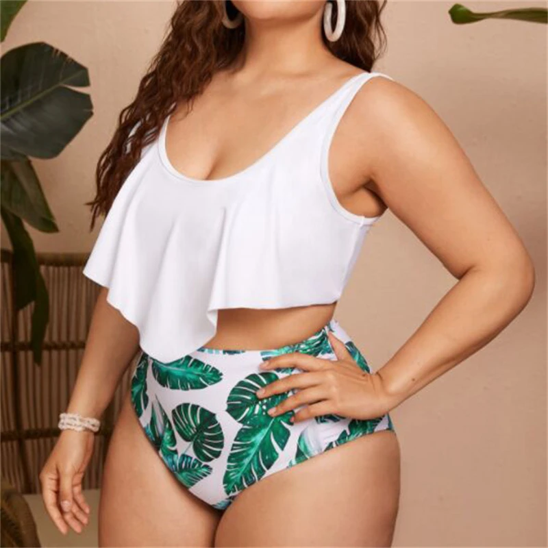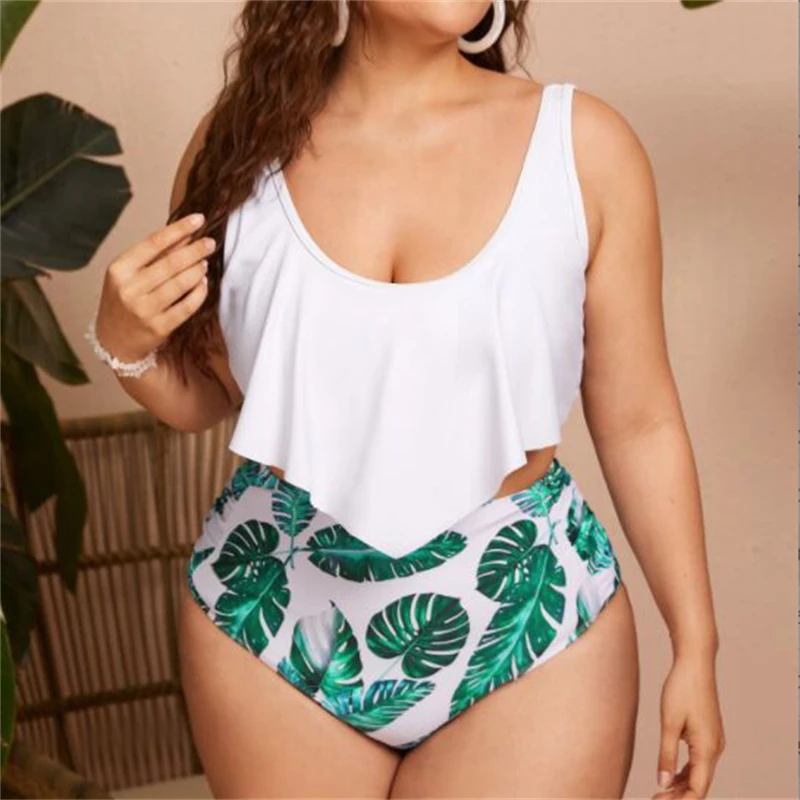Новый сексуальный пляжный купальник с глубоким вырезом Lotus, гофрированный купальник размера плюс, купальный костюм для XL-4XL девочек с высокой талией, купальник с открытой спиной, комплект бикини