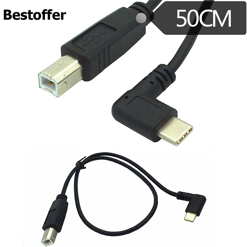 0,5 м USB 2,0 B для Type-C 90 ° Прямоугольный штекер Удлинительный кабель для концентратора жесткого диска принтера
