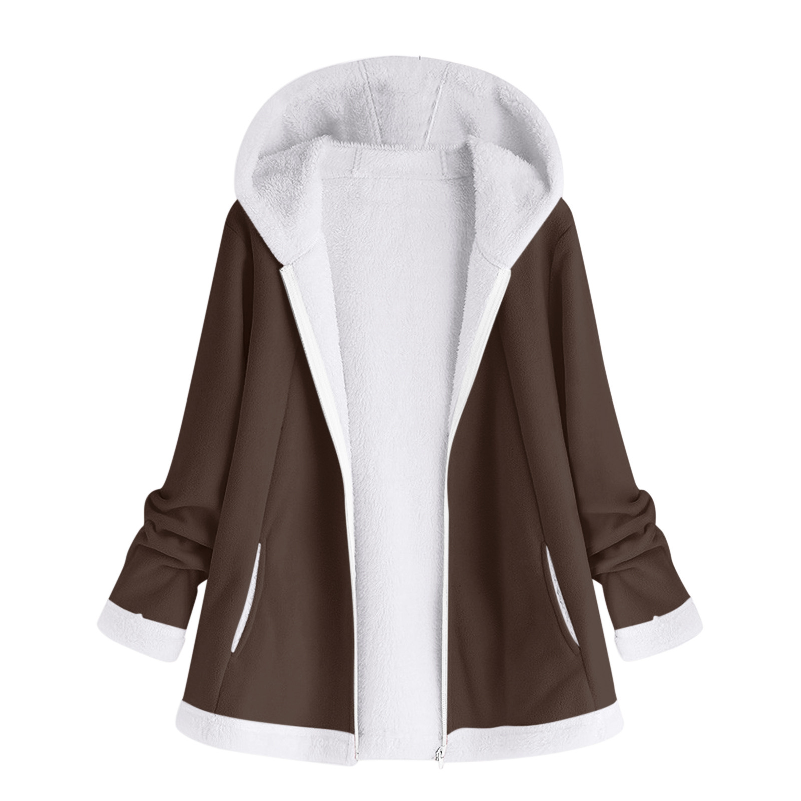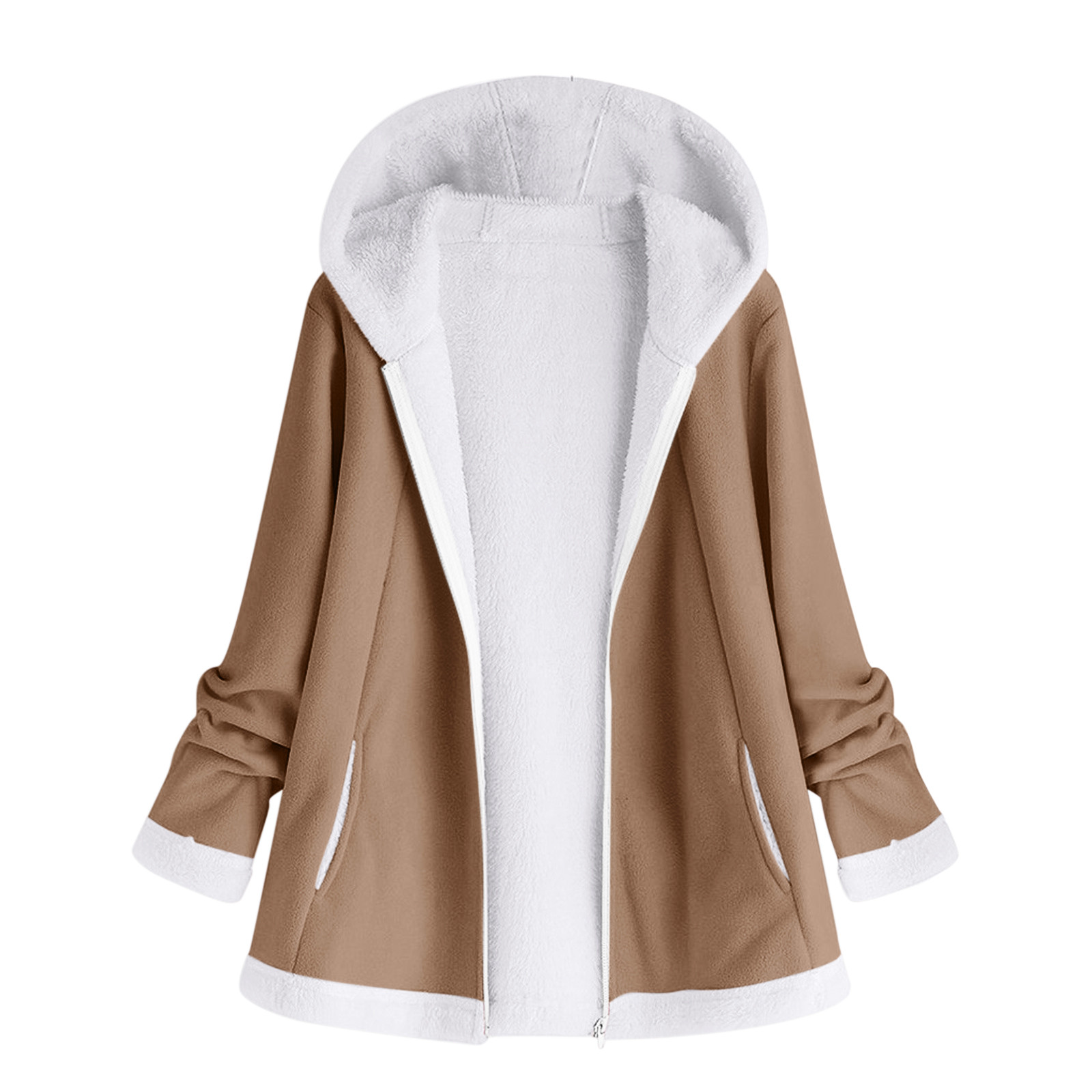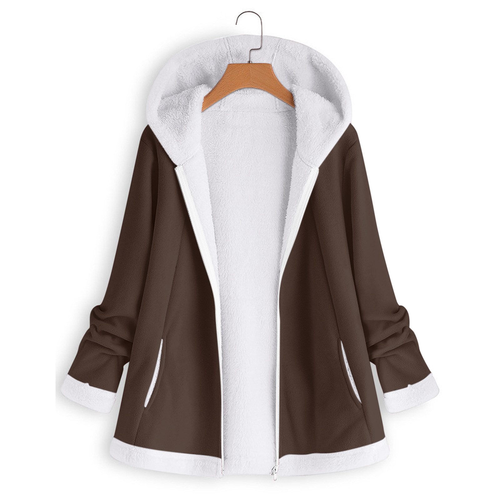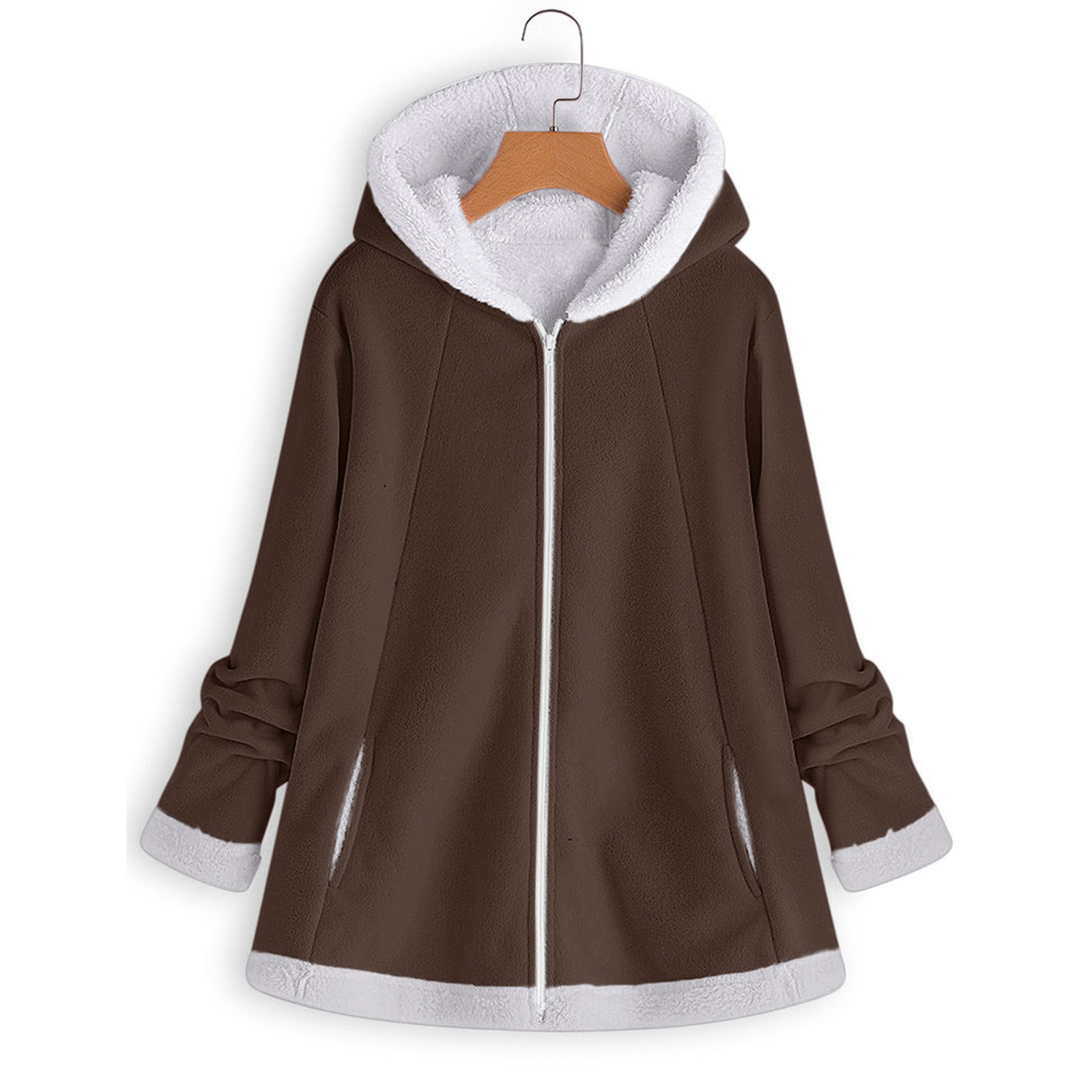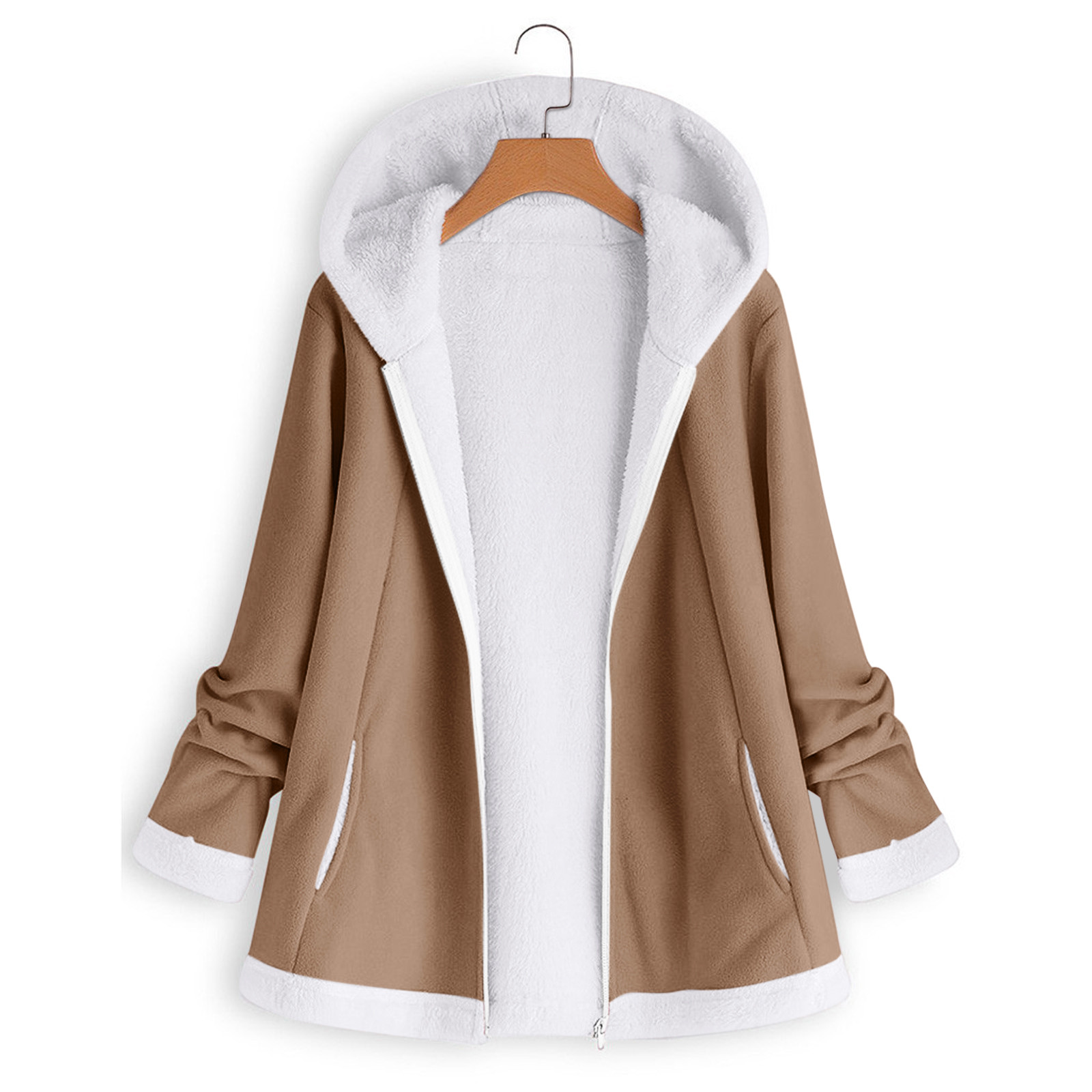 Женская Повседневная куртка-кардиган из пушистого флиса на молнии с капюшоном и карманами