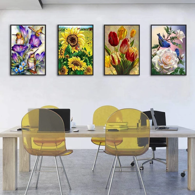 Посылка включает в себя: 6 комплектов 5D полный набор алмазной живописи цветок птицы Алмазная краска по номерам. 6x холст для рисования, 6x ручка для быстрой точки, 6x клей, 6x пластиковый лоток, достаточно круглых полимерных стереоскопических алмазов.