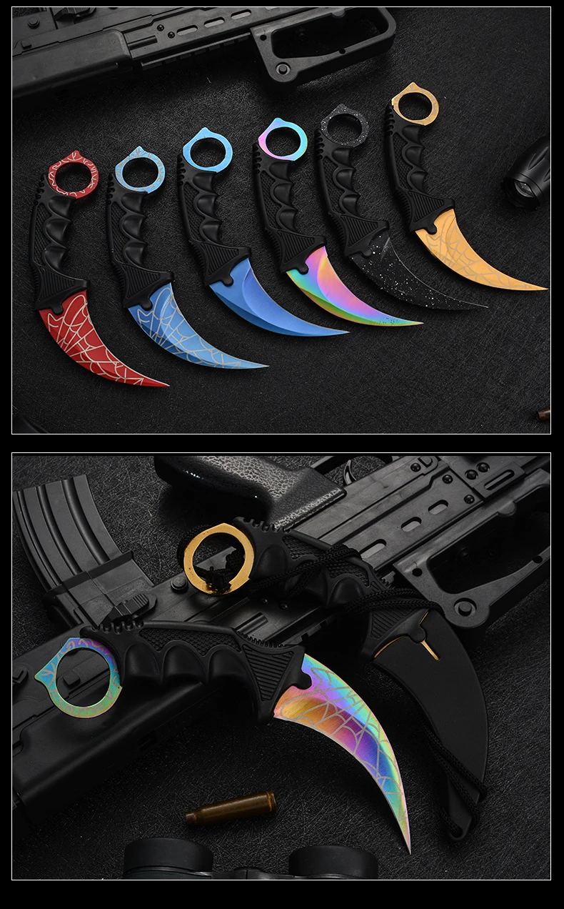 Настоящий нож Counter Strike Karambit с фиксированным лезвием, ножа, тигровый зуб, радуга, тактический инструмент для выживания, охотничий нож s