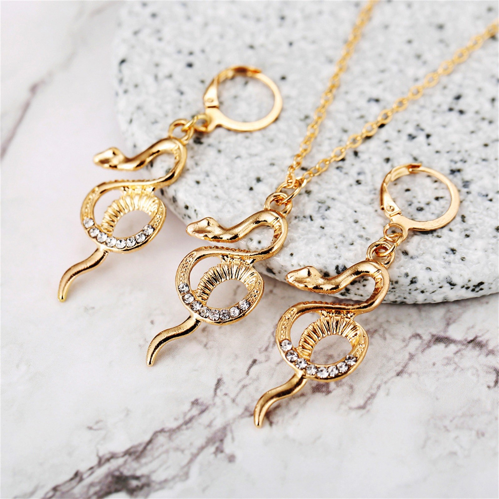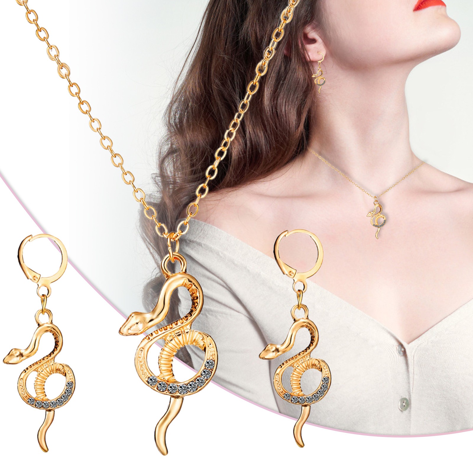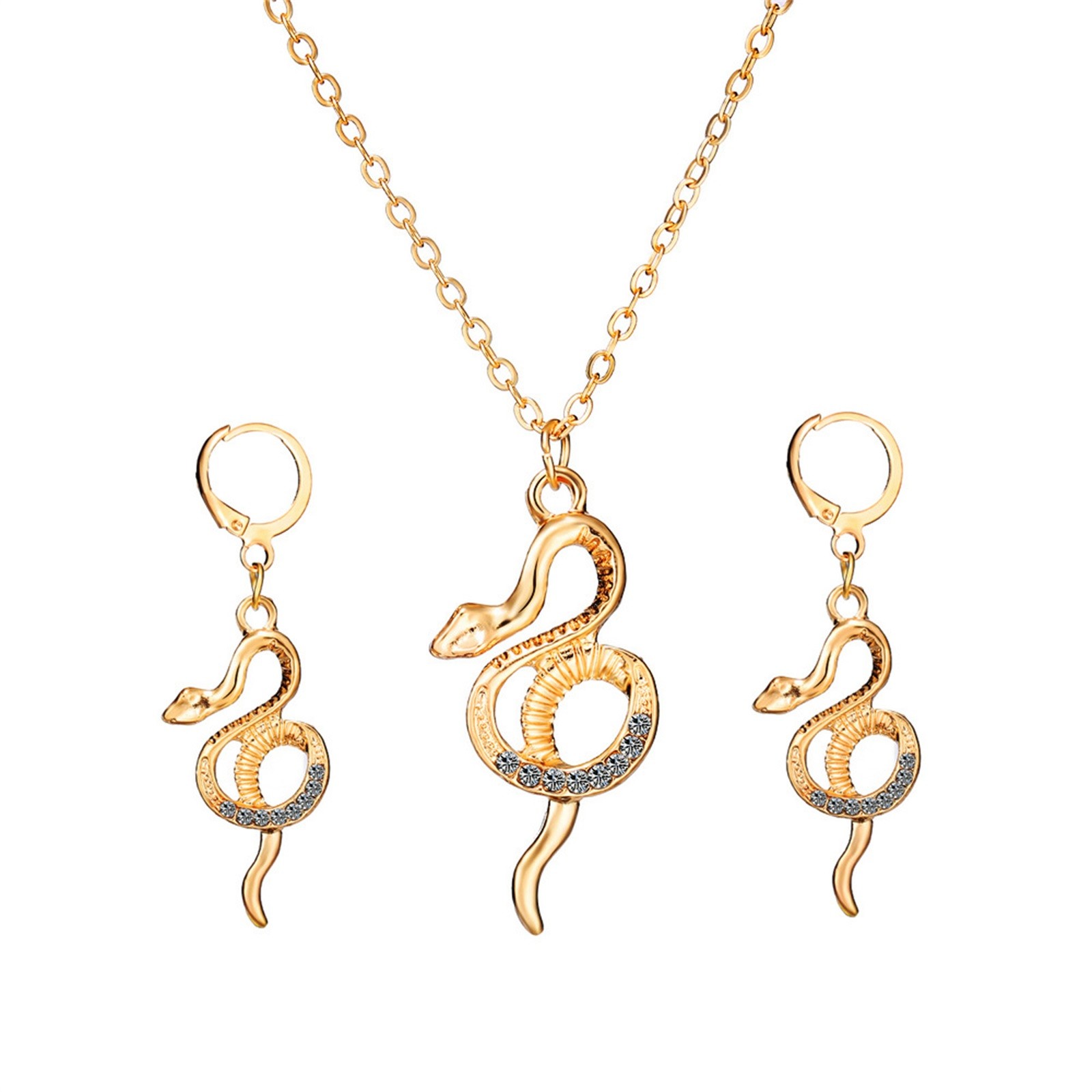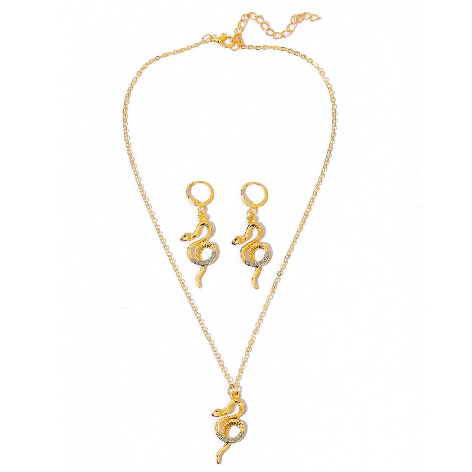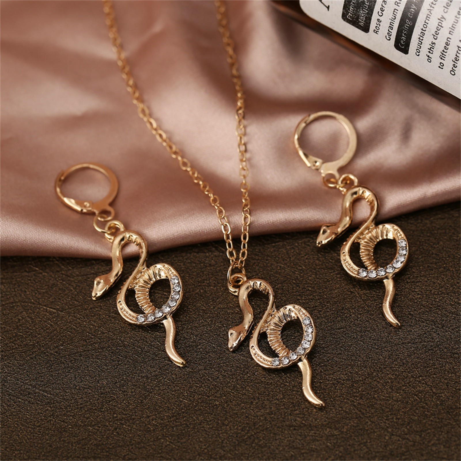 Европейский и американский приграничный новый креативный инкрустированный змея из алмазов ожерелье серьги набор ювелирных изделий комплект из 2 предметов