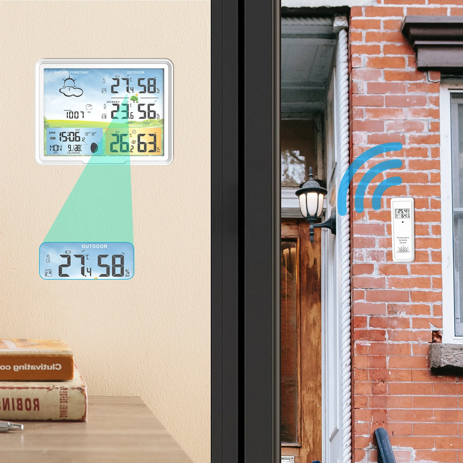 Измерение влажности: внутренний и наружный измеряемый диапазон: 20% RH ~ 99% RH.
