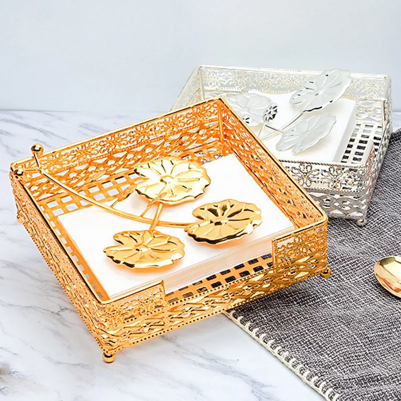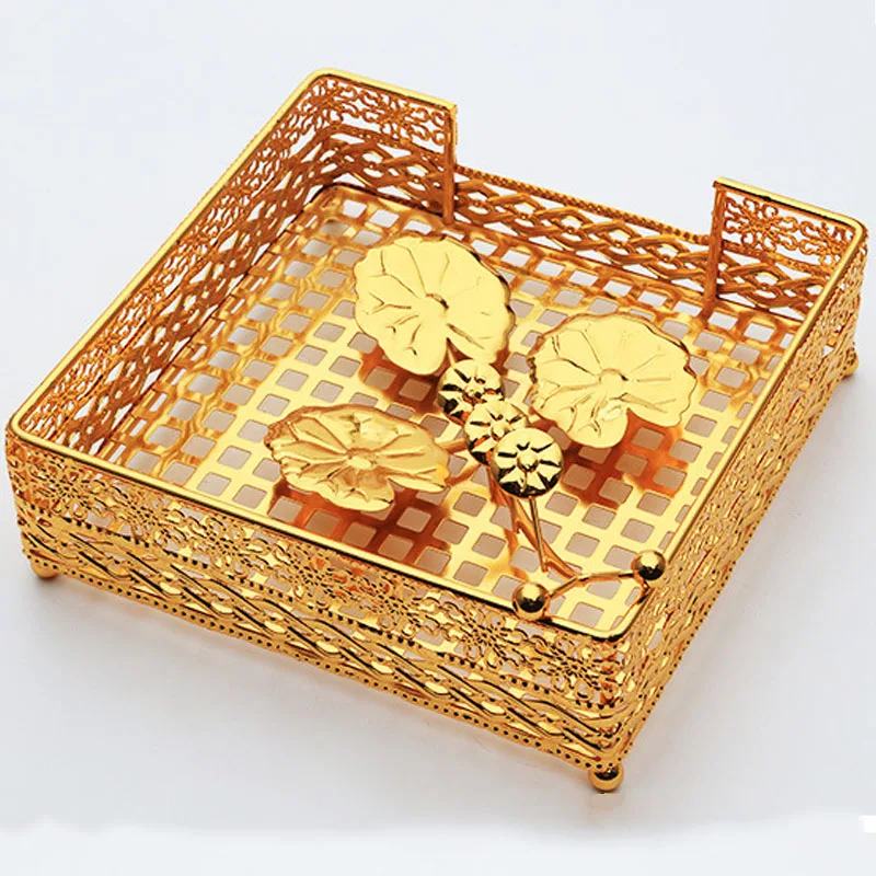 Металлический лоток для хранения, органайзер для косметики украшений, железный держатель для салфеток, роскошное золотое украшение для дома, гостиной, рабочего стола