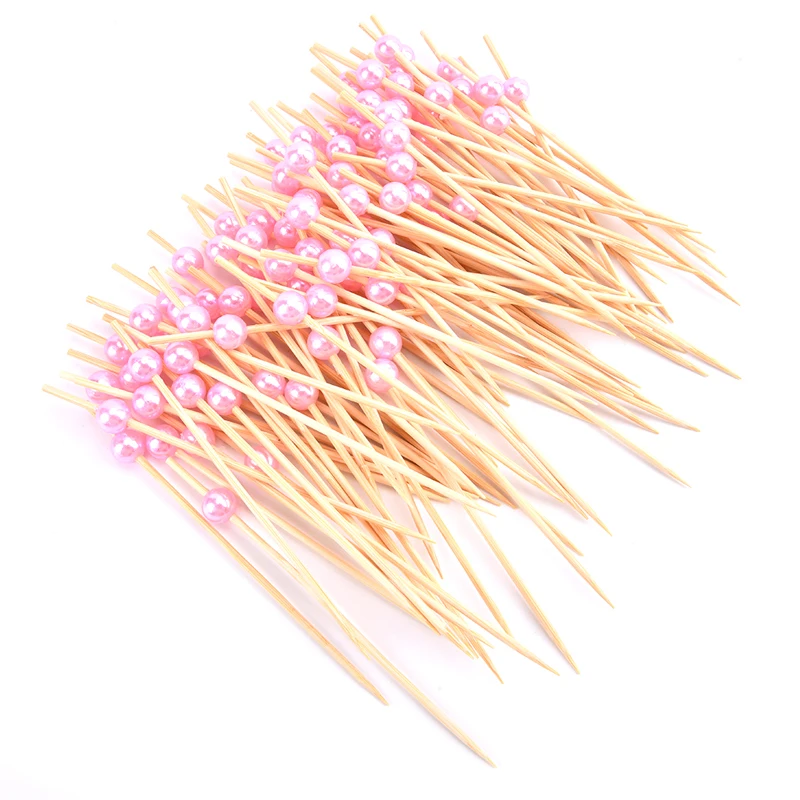 Головка бамбуковой палочки имеет яркую жемчужную форму, которая, очевидно, более элегантна, красочна и привлекательна, чем обычные бамбуковые медиаторы, чтобы украсить еду, напитки или столешницы.