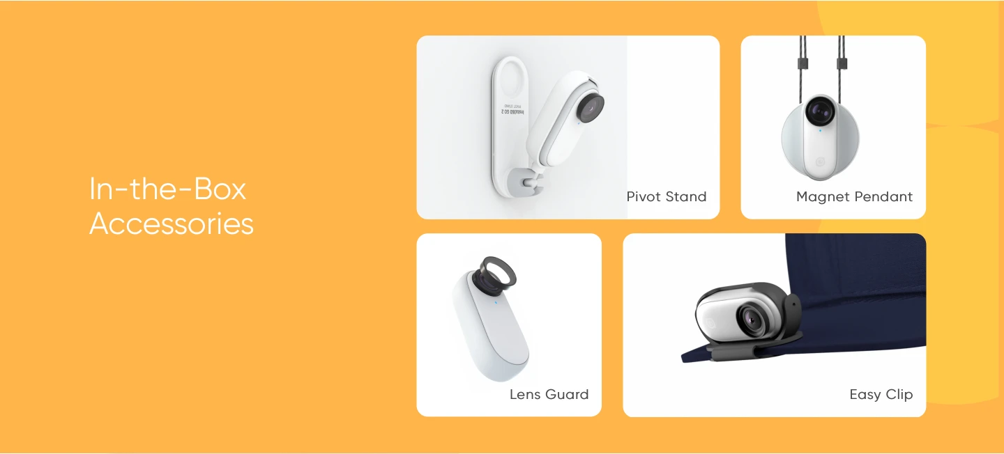 1. Автономный включает в себя 1x GO 2, 1x зарядный чехол, 1x Защитный Объектив (предварительно установленный на объектив по умолчанию), 1x Магнитная подвеска, 1x поворотный стенд, 1 легкий зажим и 1 зарядный кабель Type-C.