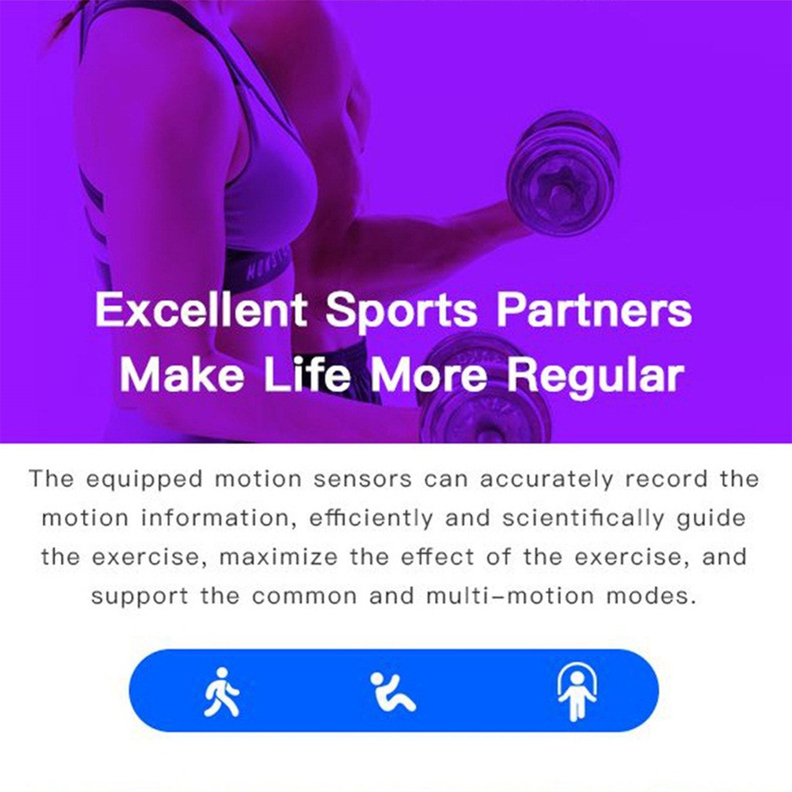 1,44 дюйма Цветной tft-экран с высокой чувствительностью и одним управлением до uch, который может Осуществлять различные операции. Поддержка Уведомления о звонках и сообщениях, не будет пропущена важная информация. IP65 Водонепроницаемый для повседневной жизни, мульти-спортивный режим, подходит для занятий спортом на открытом воздухе. Автоматически записывает ежедневный шаг движения и данные о калориях. Поддержка Пульс, кровяное давление, мониторинг кислорода в крови, мониторинг сна Функция, когда вы засыпаете, она автоматически контролирует качество Режим сна и запись данных в приложении. USB подключаемого модуля Дизайн зарядки, снимите ремешок для подключения и зарядки, легко и Удобно.Спецификация: