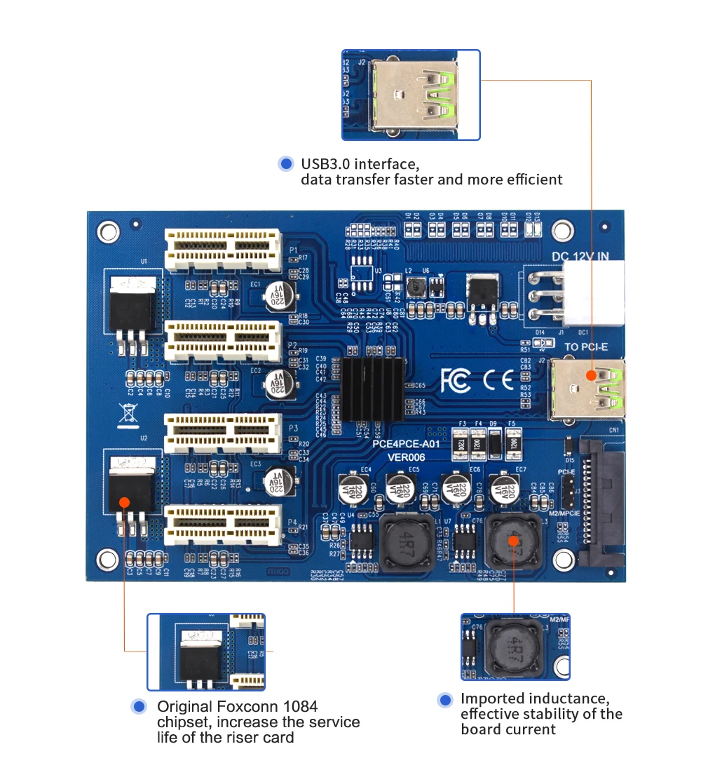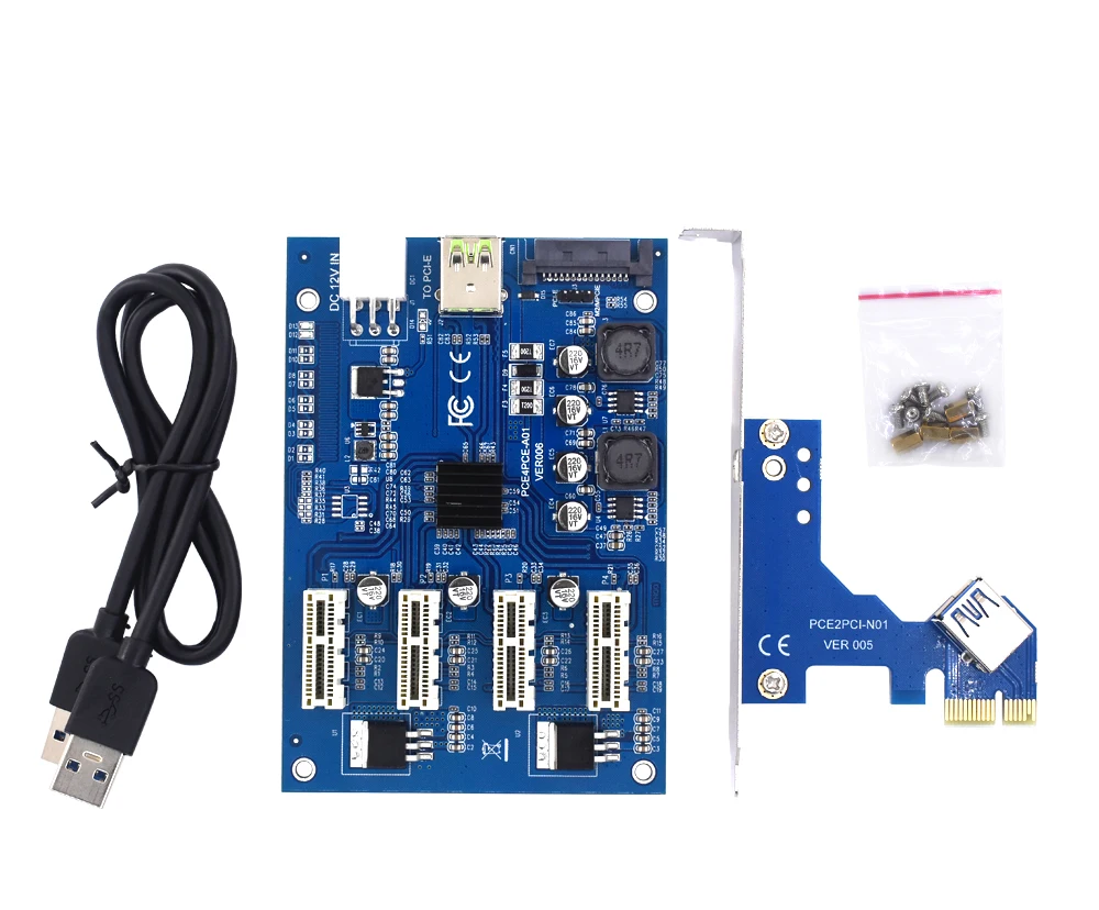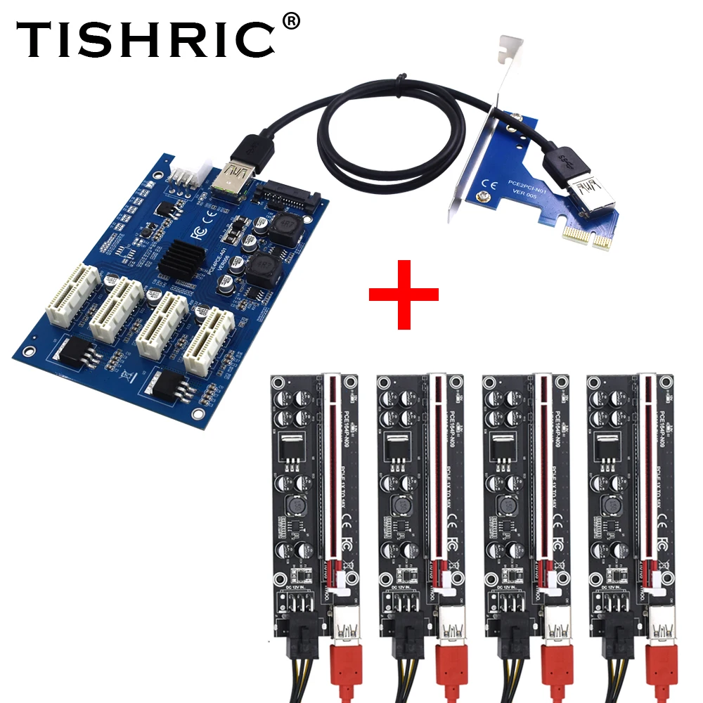 TISHRIC PCI Express мультипликатор PCIE 1-4 порта 1x адаптер для горнодобывающей промышленности с PCIE Riser 009s/009s Plus Riser Card для горнодобывающей промышленности