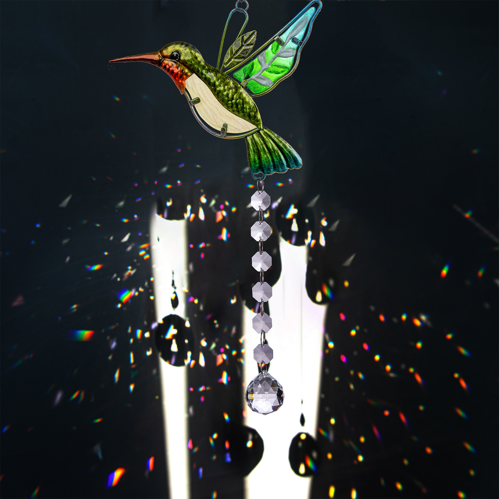 1. Повесьте Хрустальный Ловец на окно, сад, люстр или любые места, которые вам нравятся. Он осветит любое окно и подарит красивые радуги, когда солнце прольется через эти кристаллы фэншуй. Это приведет к улыбка на вашем лице и светильник вашу комнату с радугой засияет. Общая длина: 42 см, птица: 19x16 см.