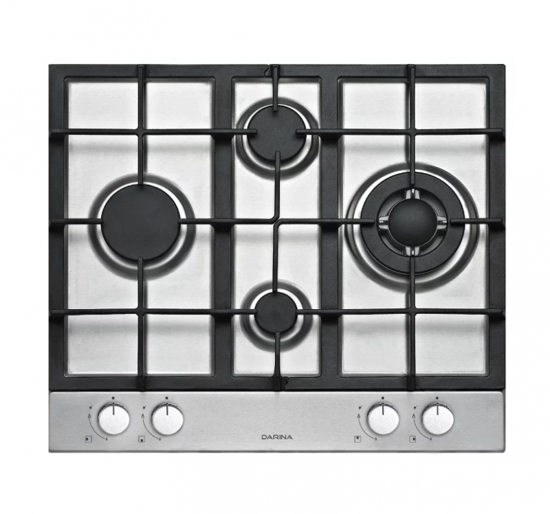 Газовая варочная поверхность Darina 3T M303 X с покрытием из нержавеющей стали. Модель включает 4 конфорки с автоматическим электроподжигом. Решетка выполнена из чугуна.