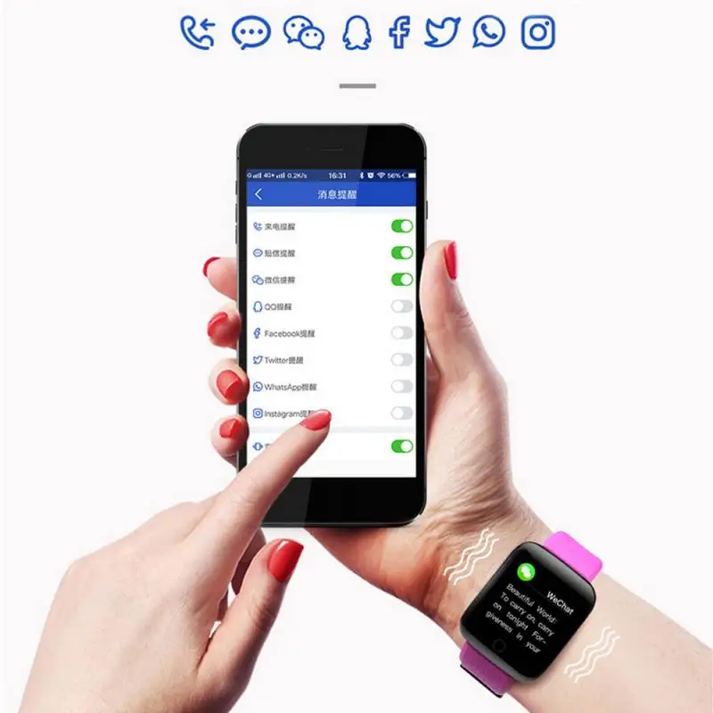 Do not disturb mode; shake a picture; find the bracelet; dial switch; dial in English; point measurement; WeChat movement; heart rate; blood pressure; blood oxygen; apple health;