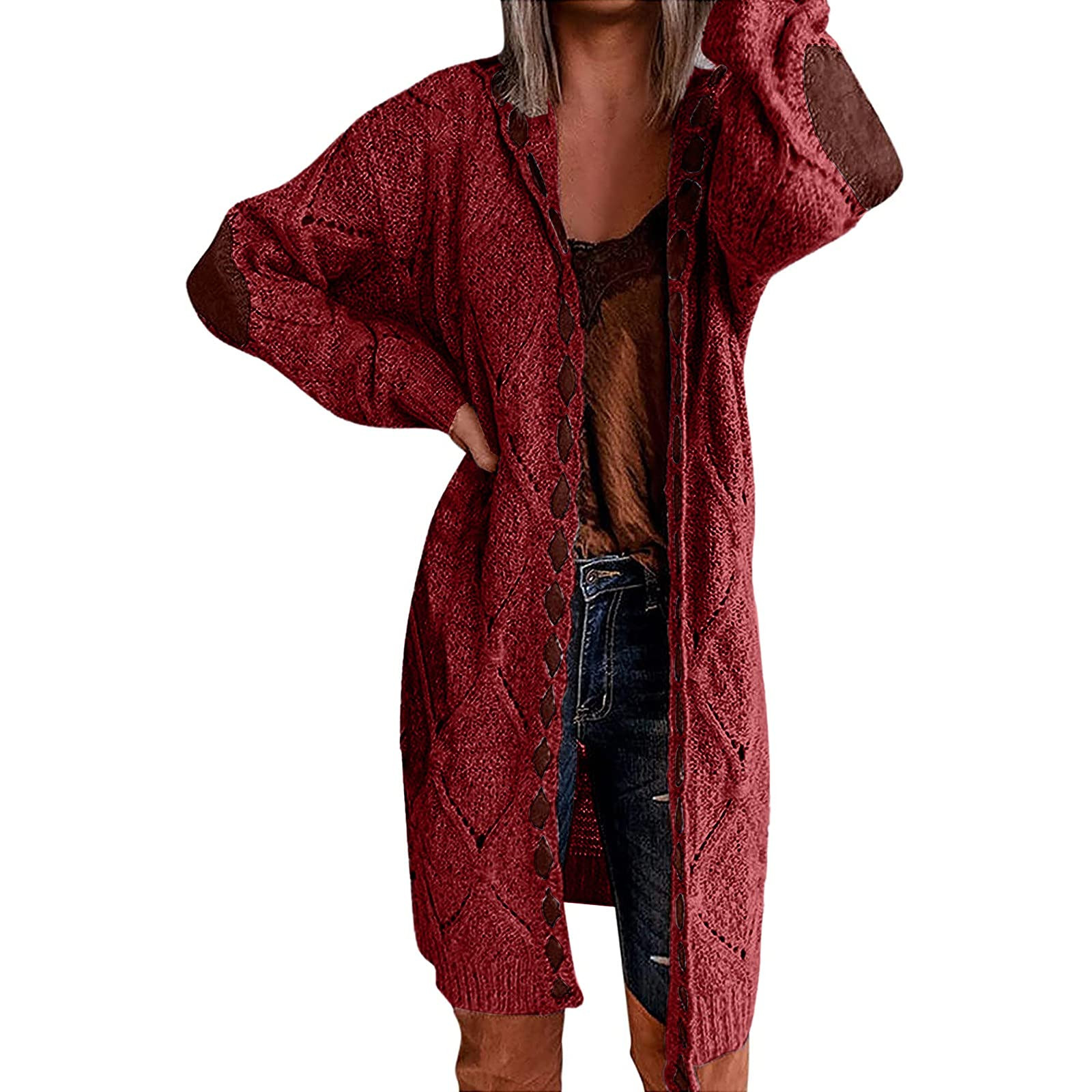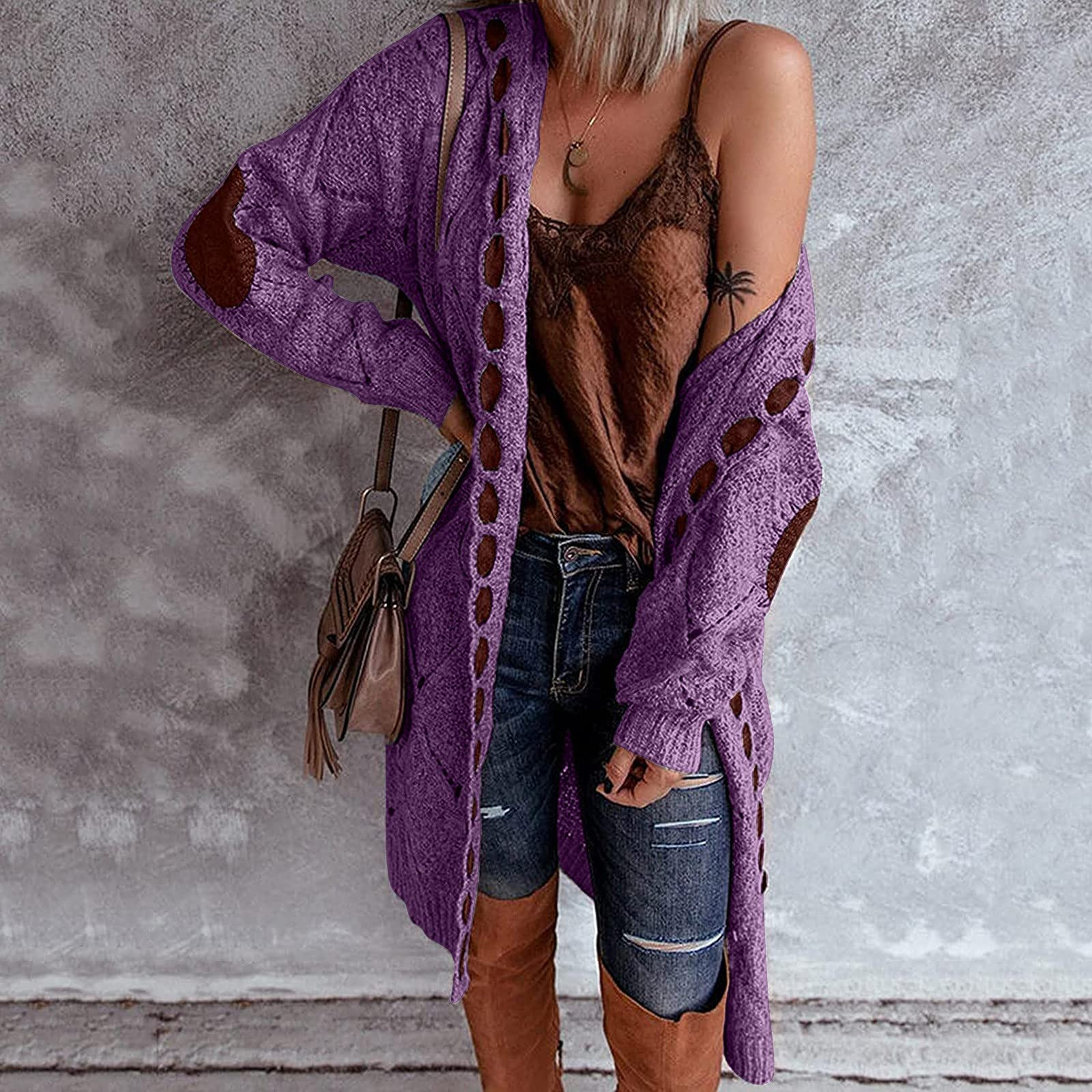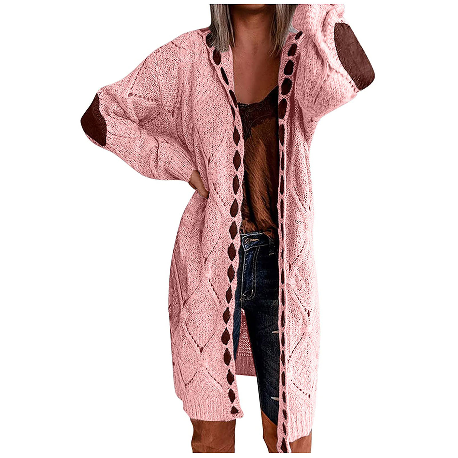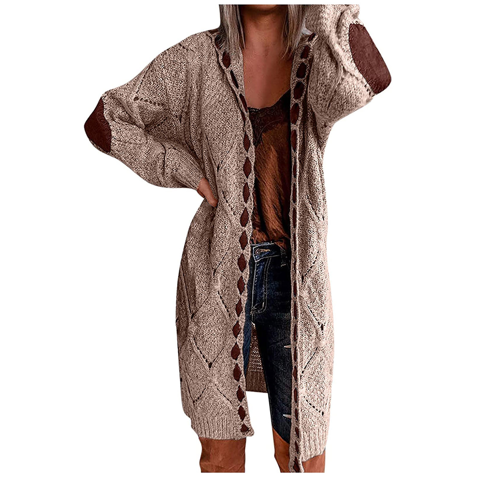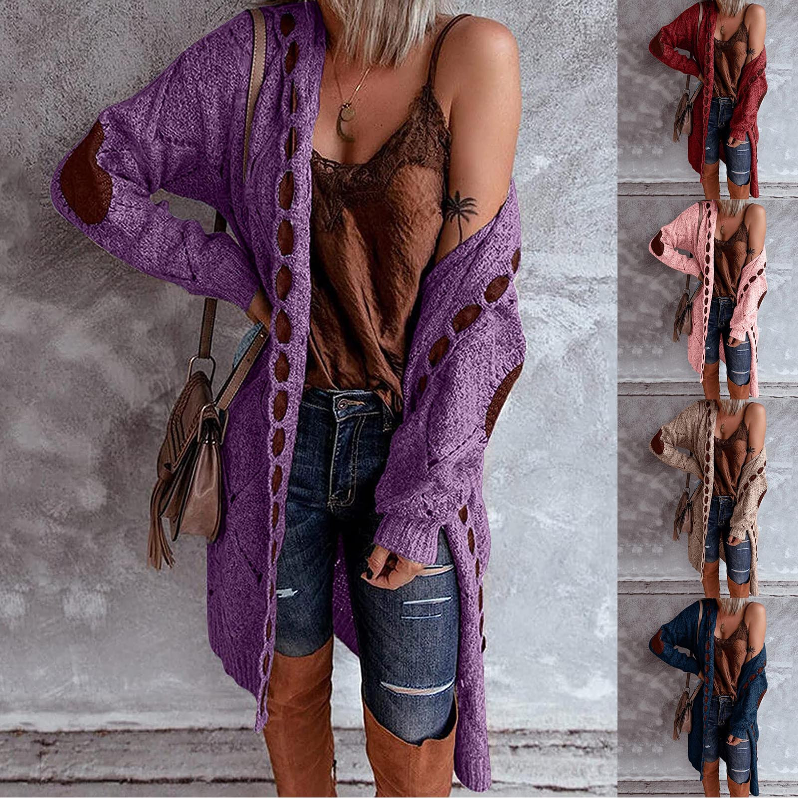 Женский кардиган в стиле пэчворк с длинными рукавами; Открытый спереди вязаный свитер; Пальто с карманами