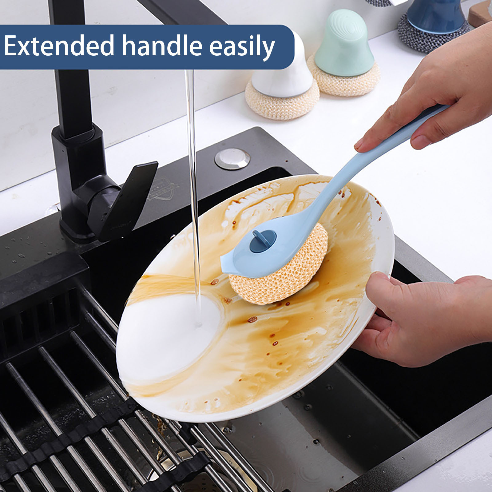 Кухонная длинная нано щетка для очистки со скребком, скраб для кастрюль, кастрюль, кухни для очистки раковины