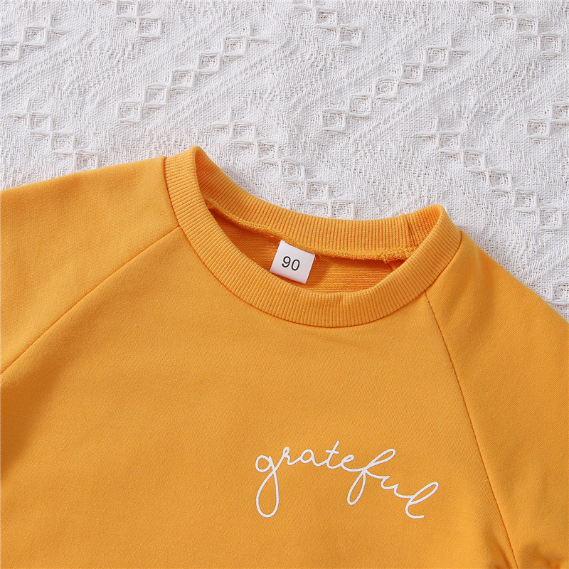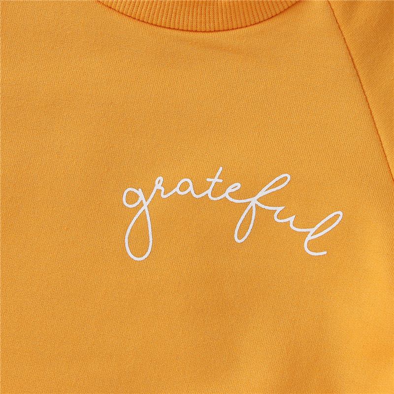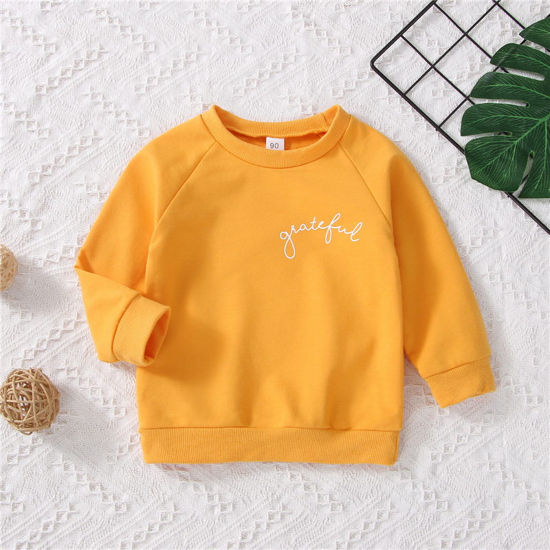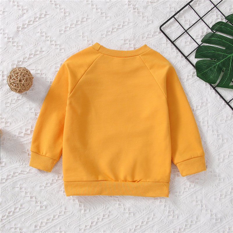 Рубашка для малышей; Длинный рукав; Круглый вырез; Принт с буквами; Свободный; Сезон осень-зима; Повседневные; Вечерние; Пуловер; Желтовато-коричневый