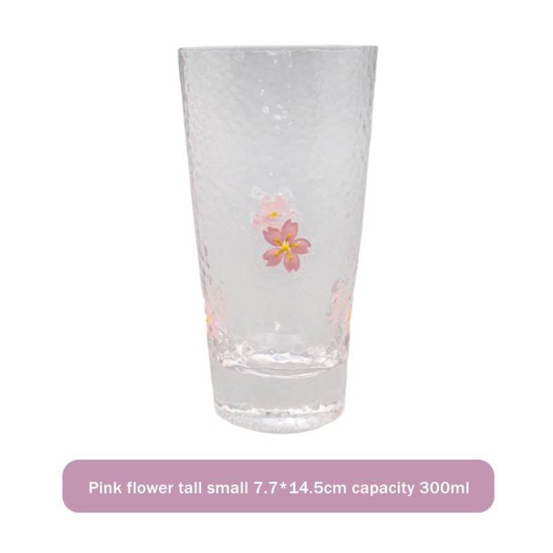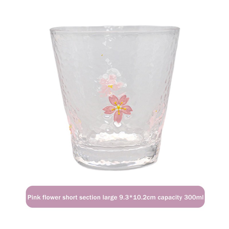С розовым цветочным принтом и коротким большого размера 9,3*10,2 см, объем 300 мл