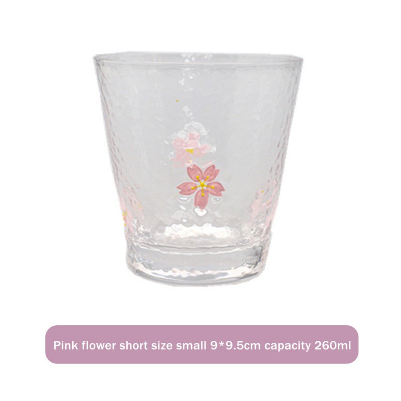 С розовым цветочным принтом и коротким маленький размер 9*9,5 см, объем 260 мл