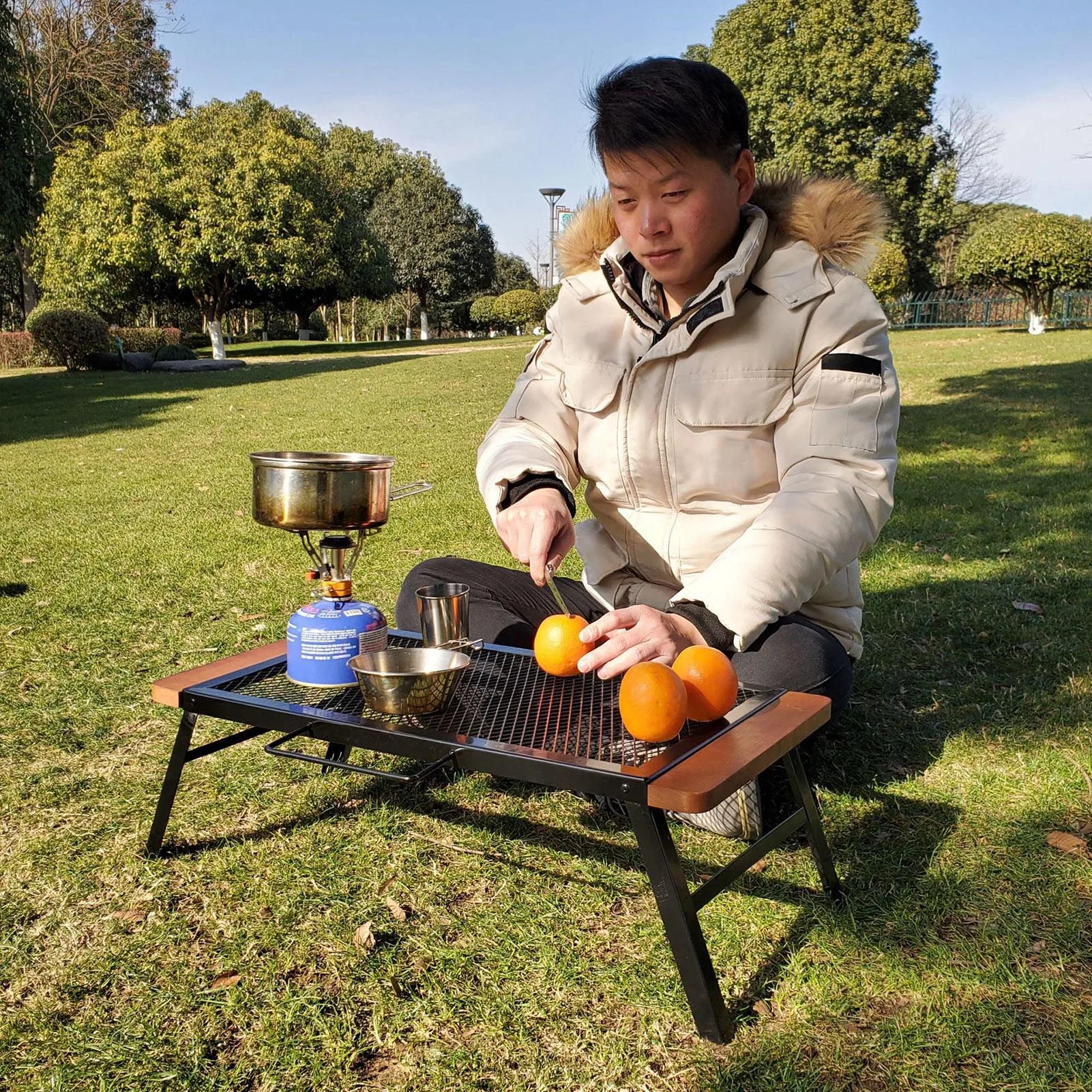 5. Практичный гриль для костра: на открытом воздухе портативный складной гриль может легко готовить горячие блюда. Предназначен для кухонной утвари на открытом воздухе, сковородок, сковородок и Горшков, используется для приготовления пищи на открытом огне. Не подходит для прямого контакта с барбекю.