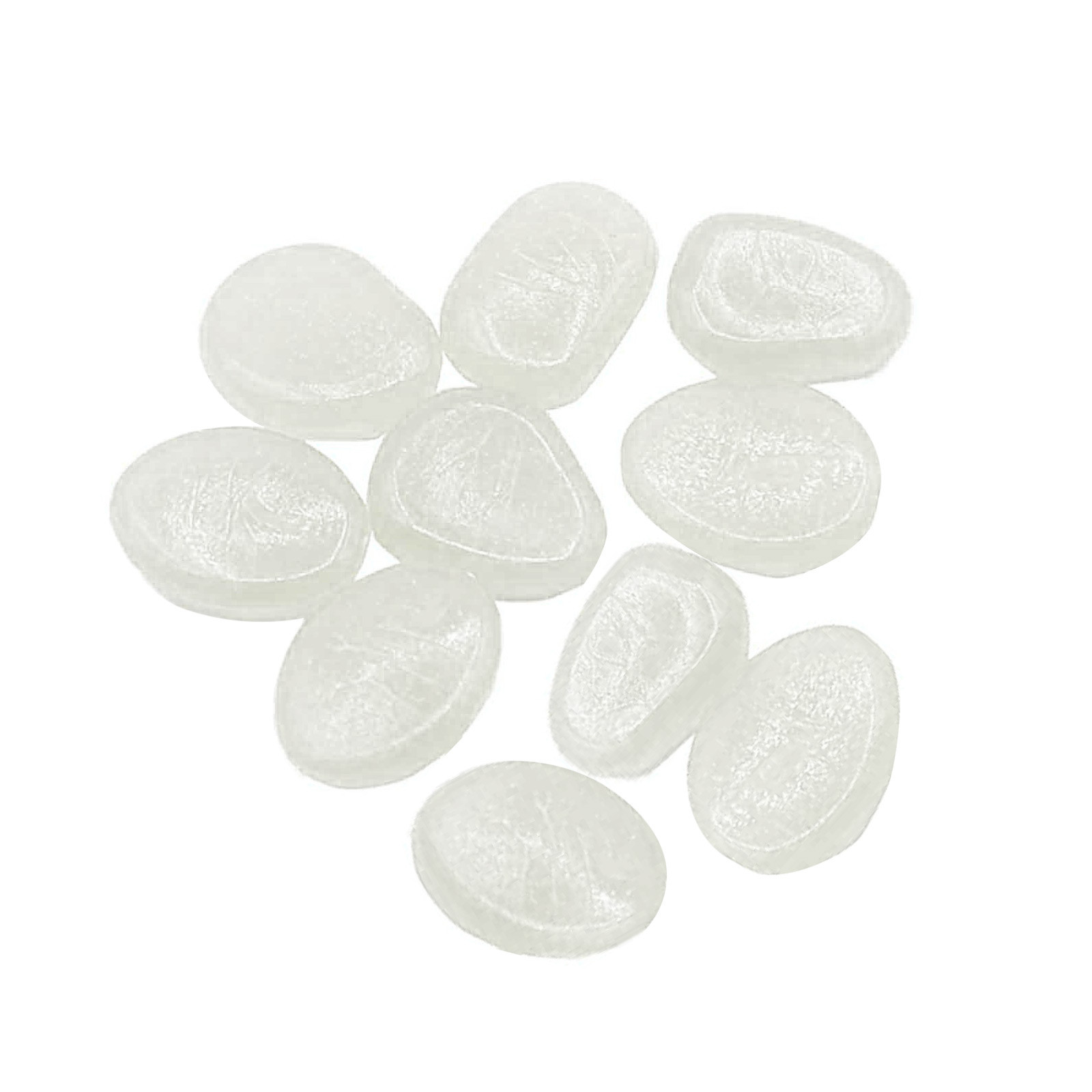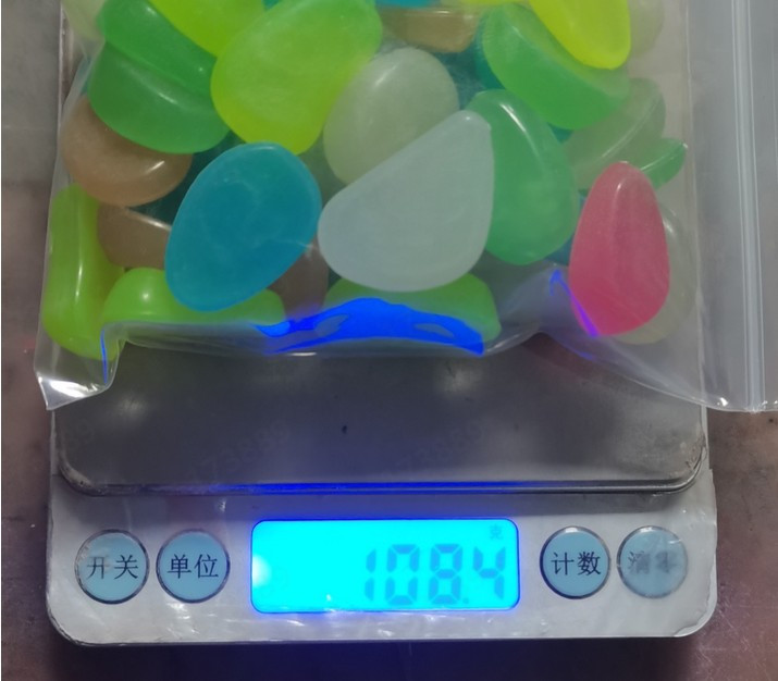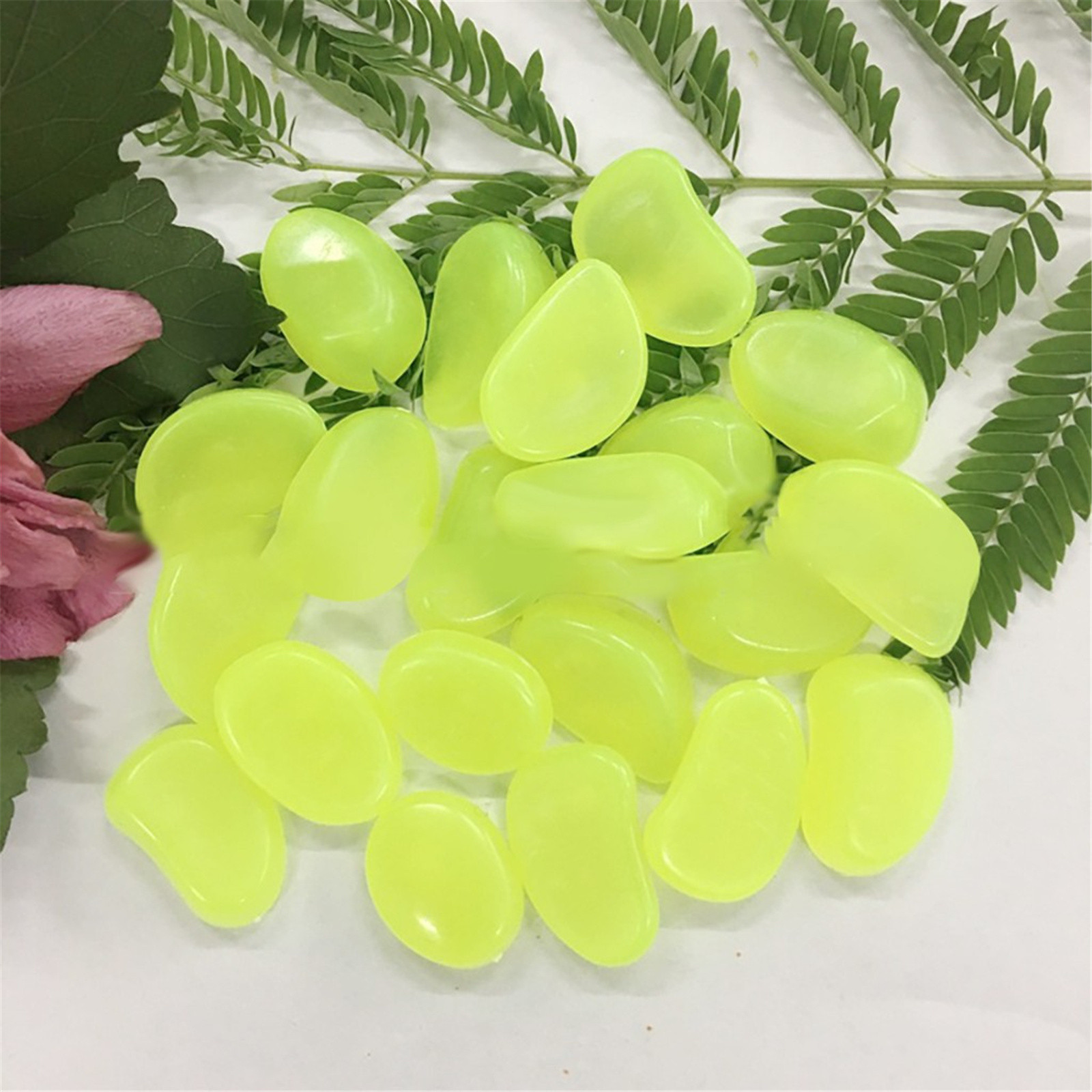 Блеск в темноте: около 10 штук светящейся смолы галька в пакете. Эти гальки поглощают достаточно солнечный светильник или другой искусственный светильник в течение дня, чтобы светиться до 3-6 часов ночью или в любой другой темной среде. Они могут непрерывно поглощать светильник и светиться.