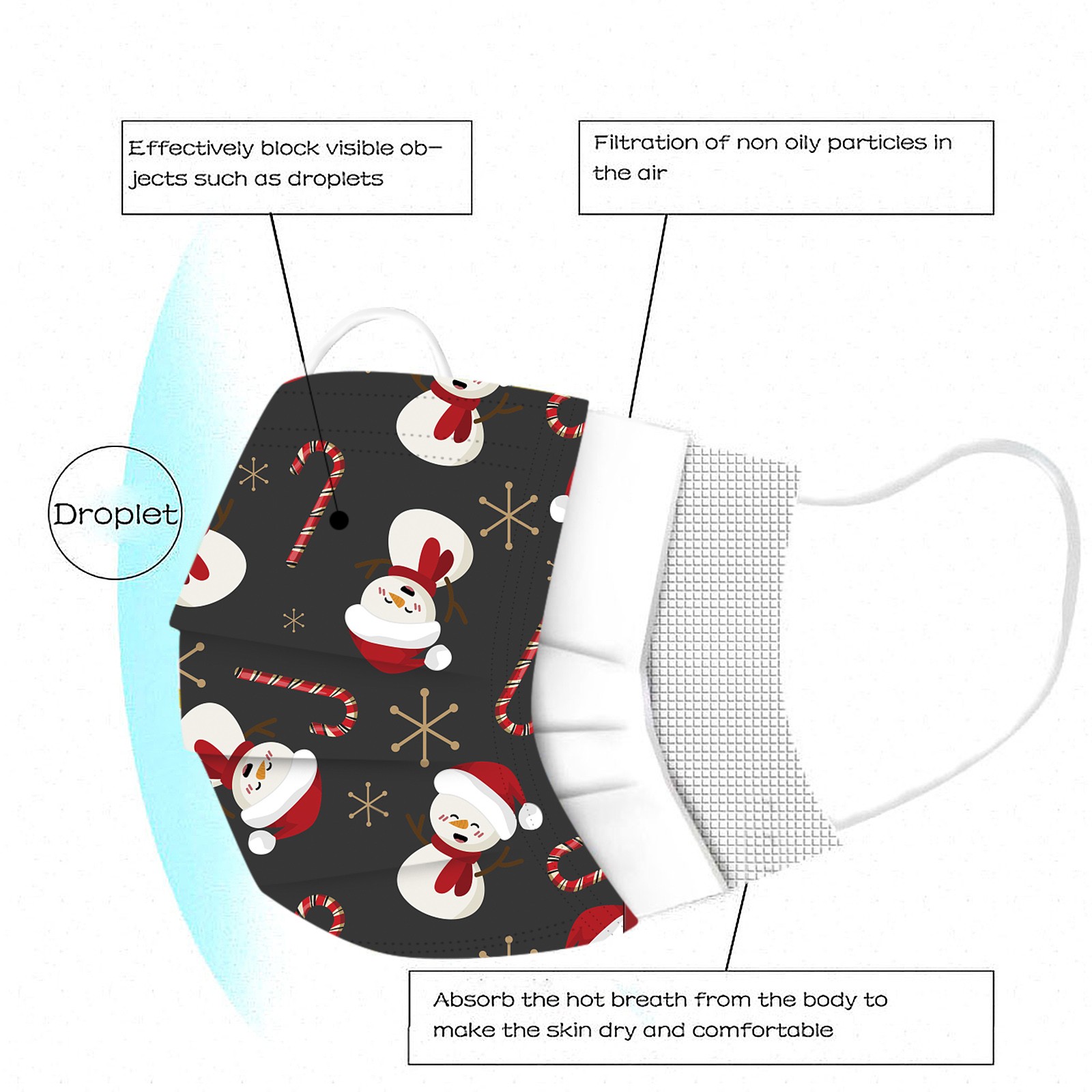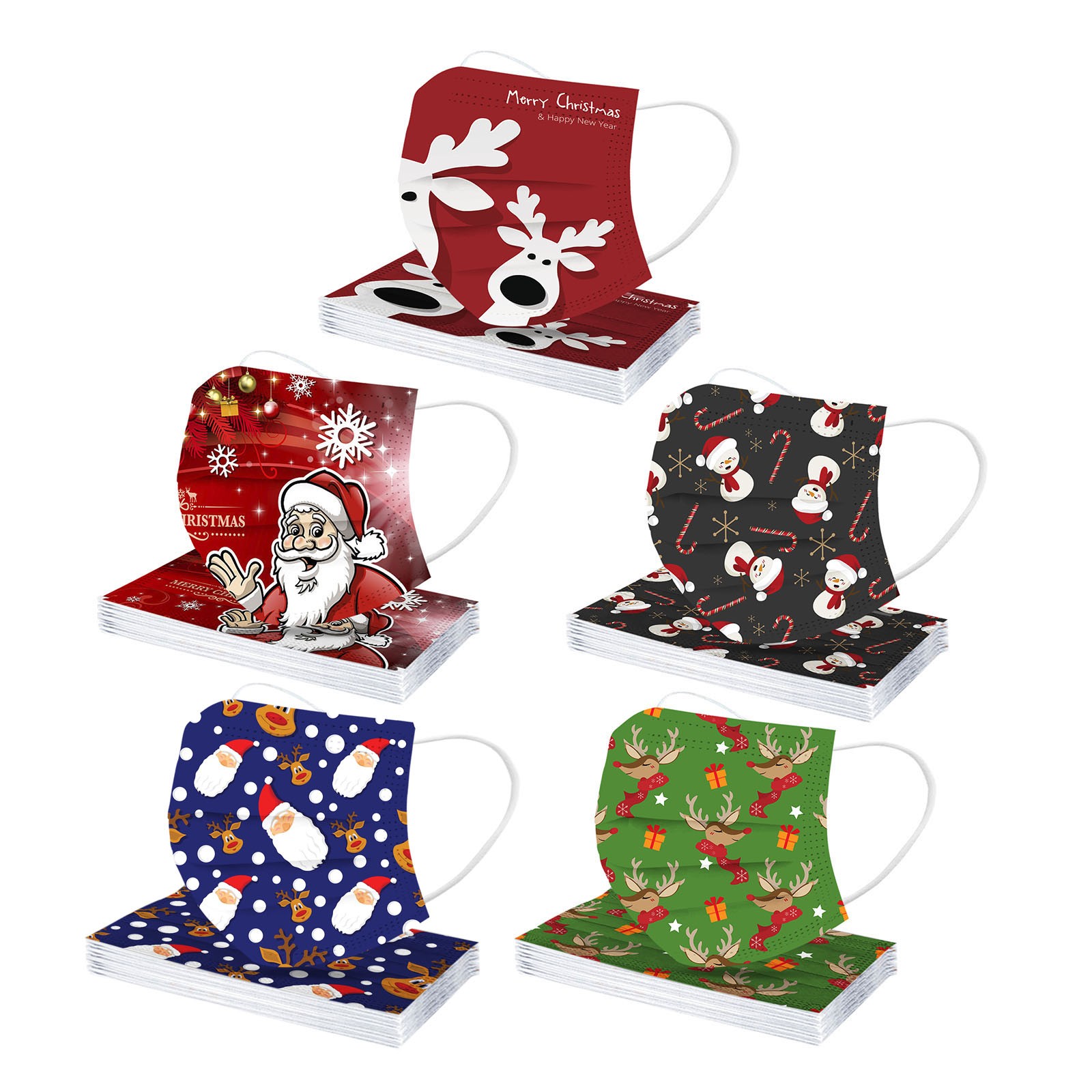 Одноразовые нейтральные на Рождество с принтом (мягкая маски для взрослых 3-Слои 50 шт. масок