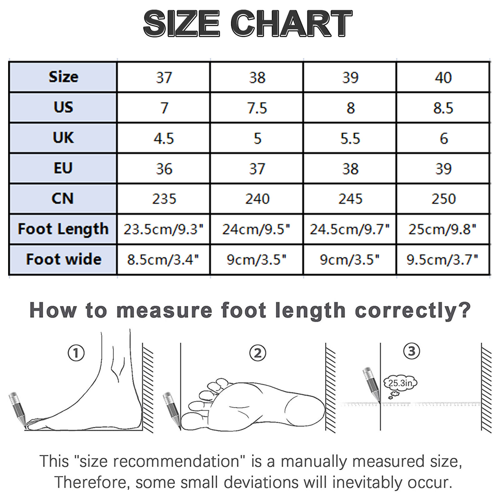 Пожалуйста, выберите размер в соответствии с типом вашей стопы.