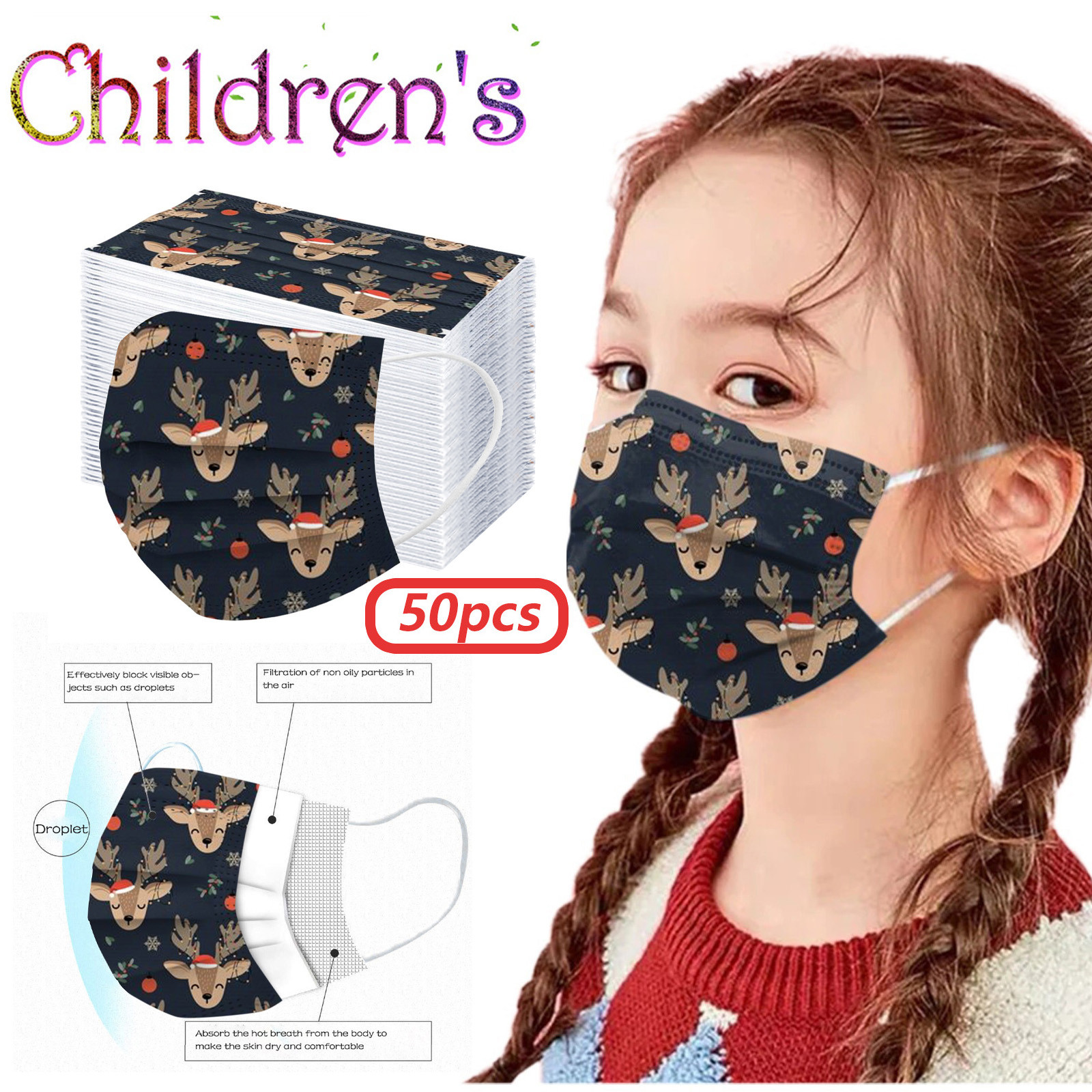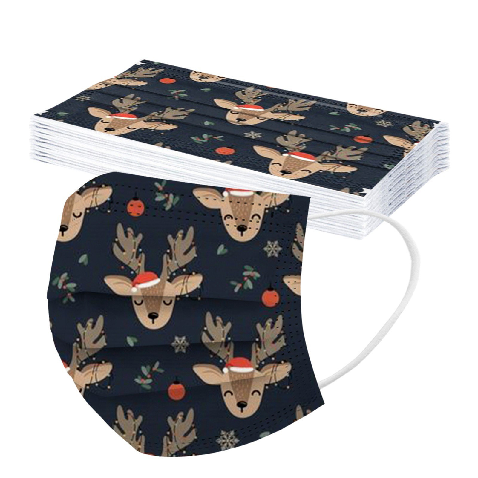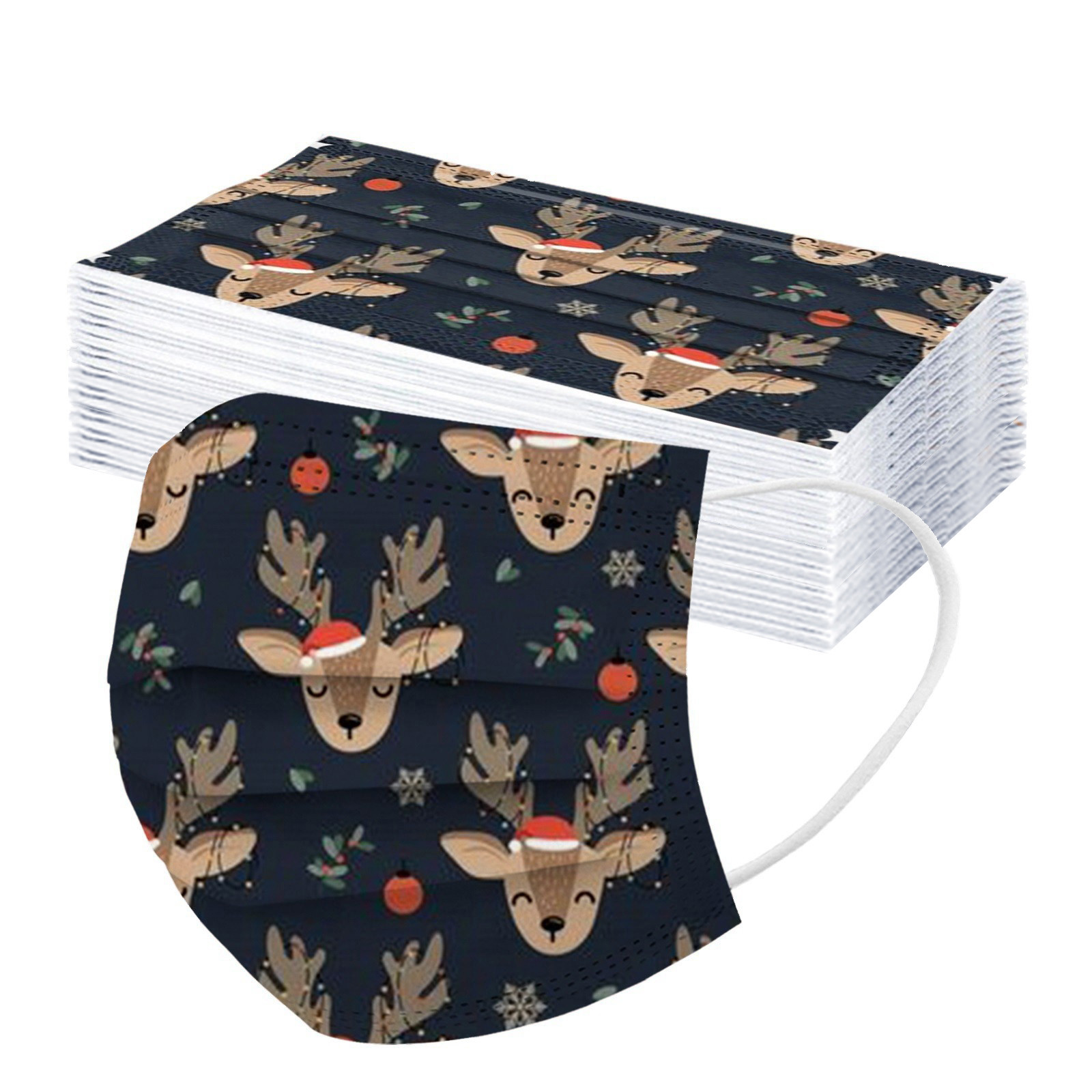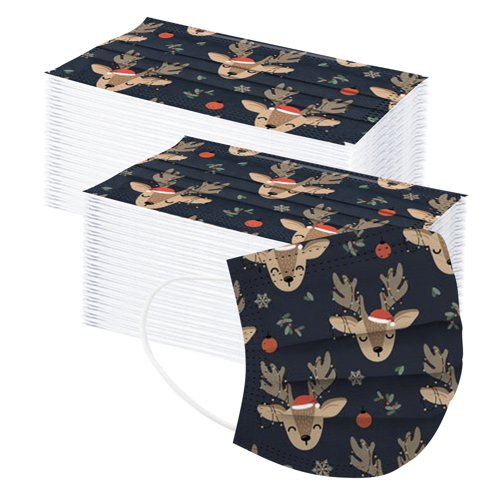 VERSATILE Christmas MASK: Christmas disposable activated carbon mask. Three layers, of protective filtration which includes non-woven fabric outside, Melt-blown fabric filter in the middle and soft non-woven fabric inside for comfort.Also perfect daily wear in a'llergy season.The perfect Christmas gift for your family and friends. BREATH EASILY: This Christmas disposable mask with design is for general use, effectively blocks droplets and d'ust. Non-woven can wisk away moisture. Suitable for all face shapes,breathe smoothly without resistance. PERFECT DESIGN: Soft elastic and bendable nose bridge help the mask conform to the face. Comfortable elastic earloop, extra-soft ear loops eliminate pressure to the ears.Inner layer is made of soft facial tissue, no dye, gentle to the skin. QUALITY MATERIAL: Made of environmental friendly material, moisture-proof, n'on-t'oxic, non-irritating, soft and comfortable. Novelty Halloween elements and colors, which will create a mysterious atmosphere. It protects you while making you look very stylish and temperament. OCCASSIONS: Novelty Christmas mask is perfect for any occassions. Not only weddings, bridal showers, communion, girl’s ladies night out, parties, professional work event, office, evening wear also perfect for Christmas Gifts, Costume Parties, Carnivals.Product description