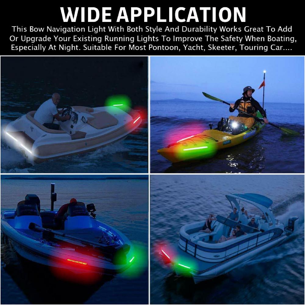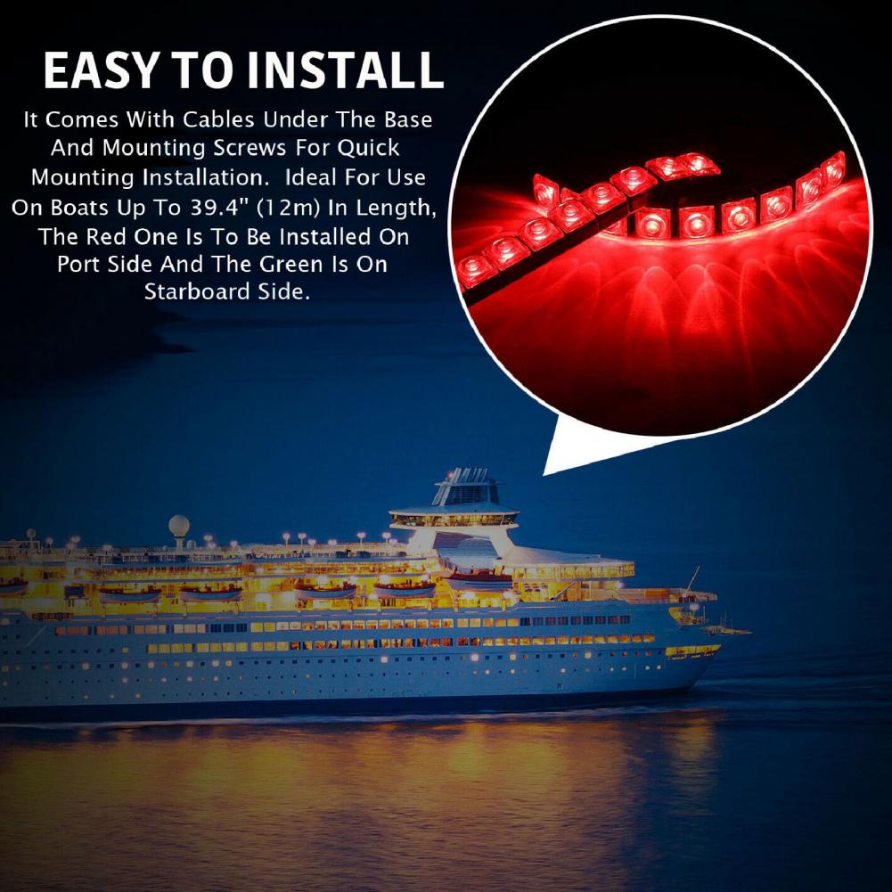 Подходит для большинства буев, яхт, скитеров, туристических транспортных средств, рыбацких лодок, скоростных лодок и других судов. Он очень подходит для использования на сосудов длиной до 39,4 дюйма (12 м). Красный установлен на стороне порта, а зеленый установлен на правой стороне.