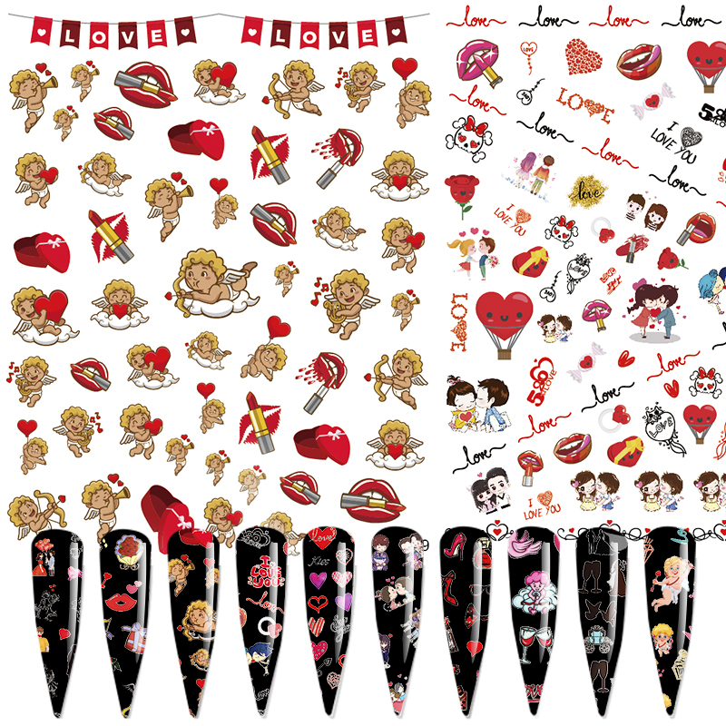 Наклейки для ногтей на День святого Валентина с изображением сердца и губ, слайдеры, аксессуары для ногтей, наклейки для маникюра, клей, Декор, дизайнерские принадлежности
