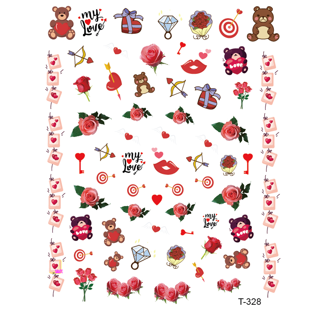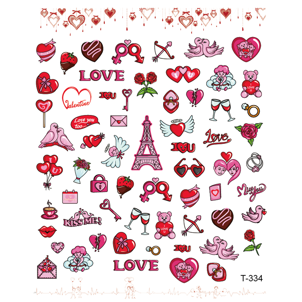 1 Лист наклейки для ногтей на День святого Валентина