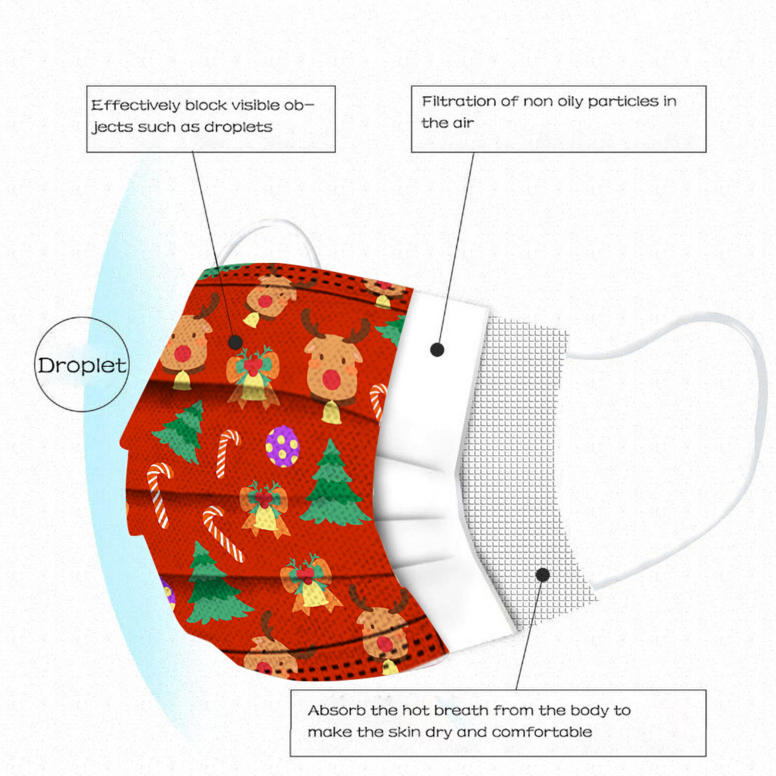 Взрослая Мужская Женская Рождественская Детская одноразовая маска для лица промышленная 3Ply Ушная петля 50 шт маска