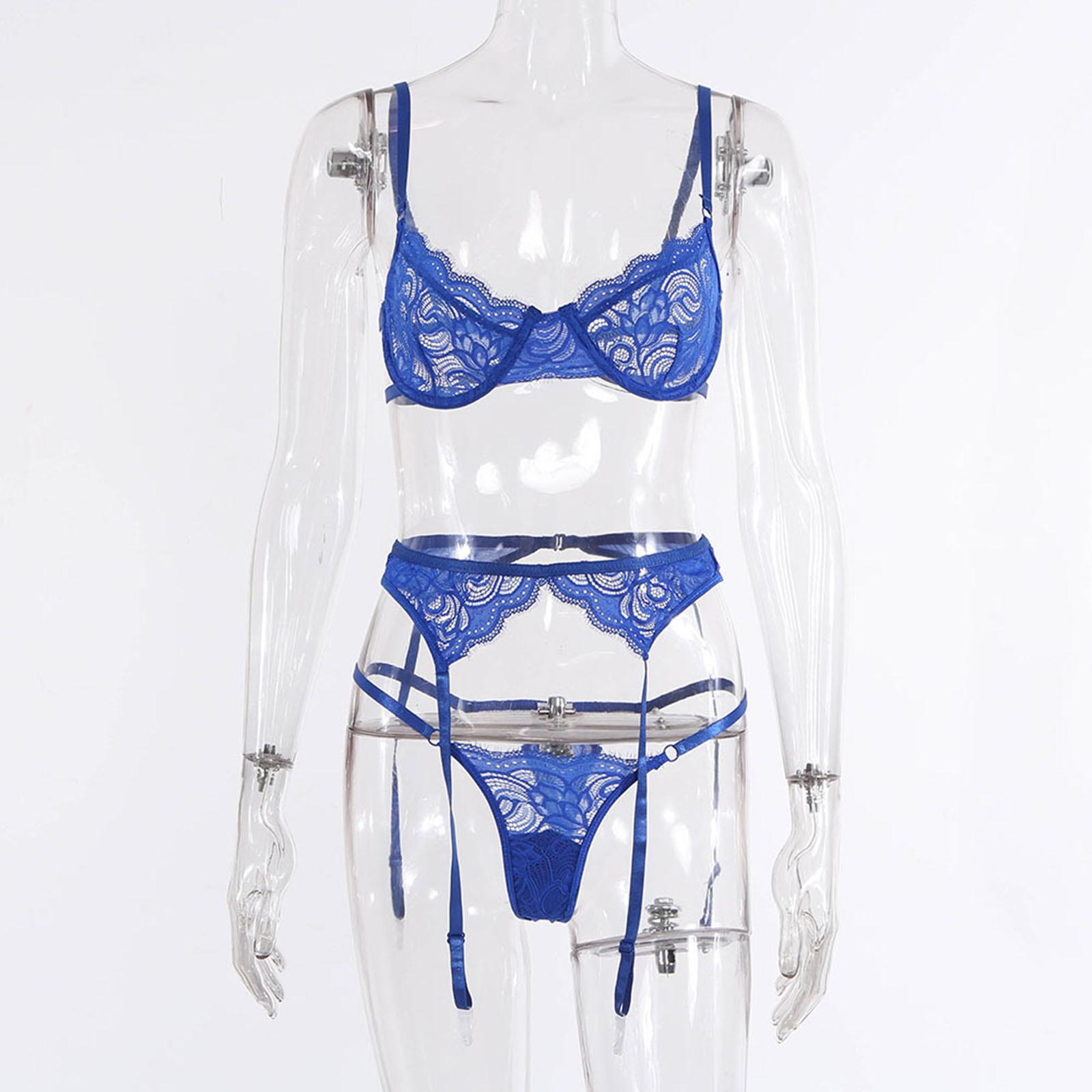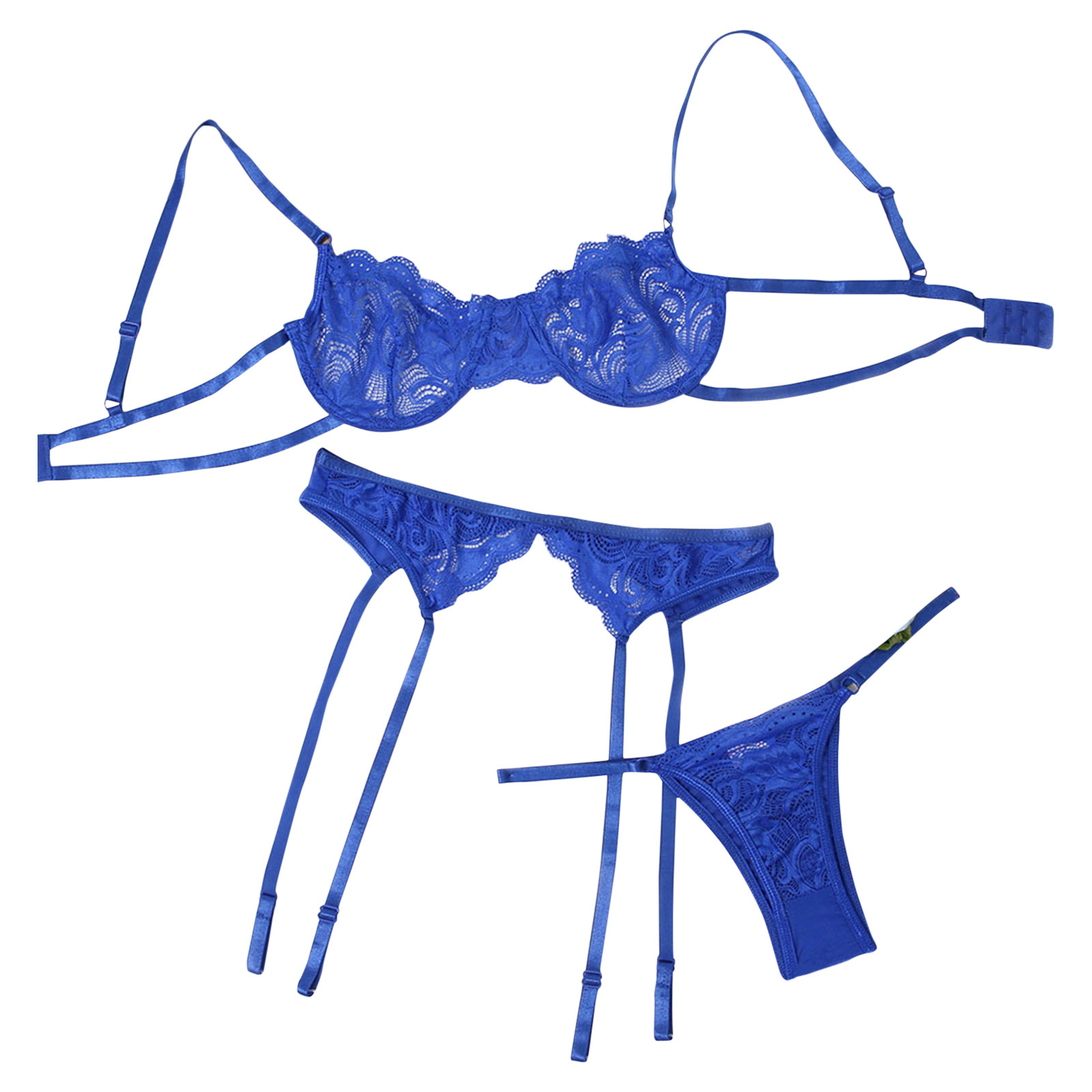 Женский комплект нижнего белья, сексуальный тонкий кружевной бюстгальтер из трех предметов, забавный бюстгальтер Sous Vetement Femme, костюм, Экзотическая одежда, комплект нижнего белья