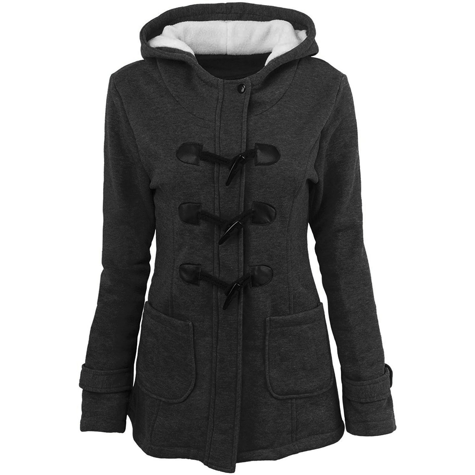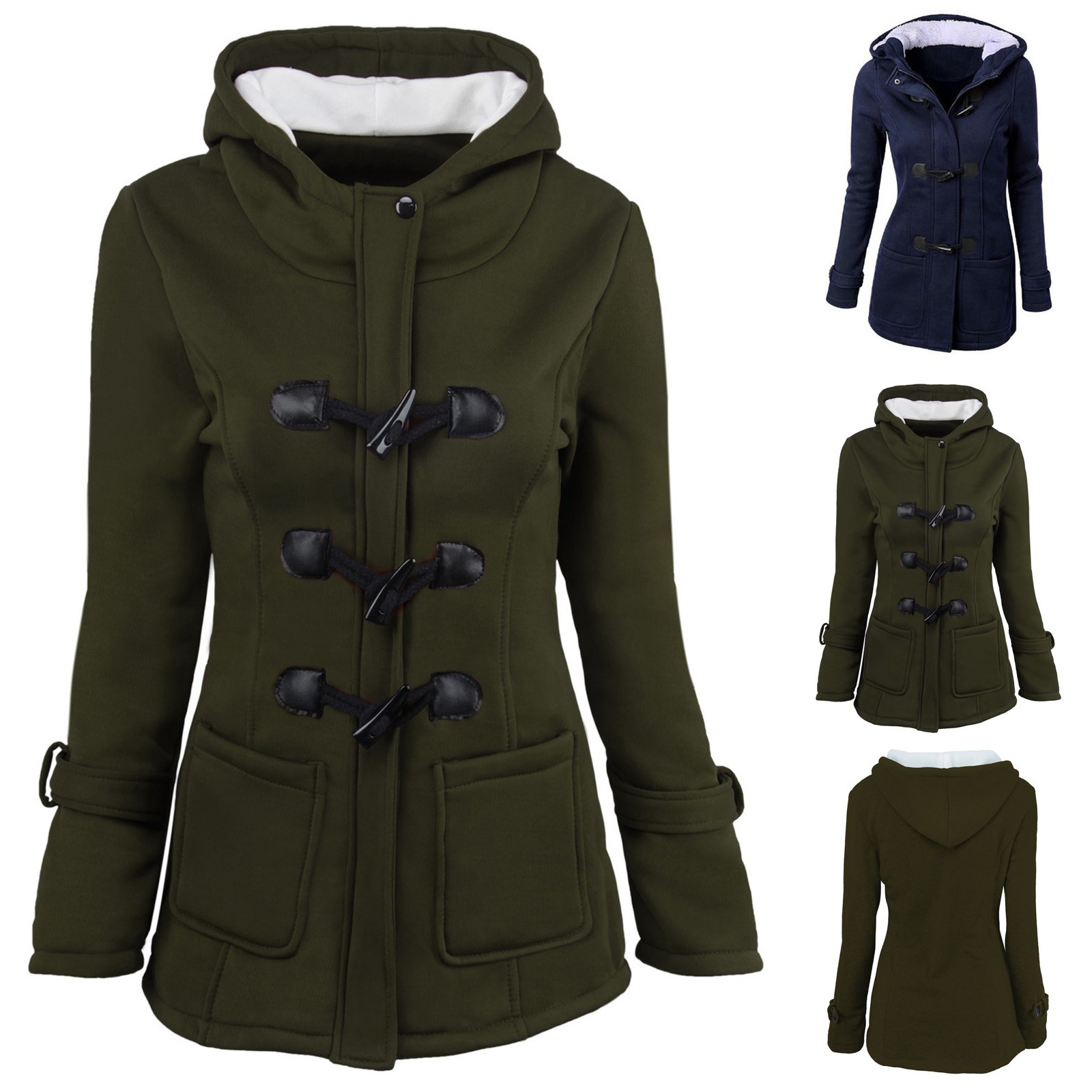 Женская модная флисовая утепленная куртка с роговыми пуговицами и капюшоном; Зимняя теплая куртка