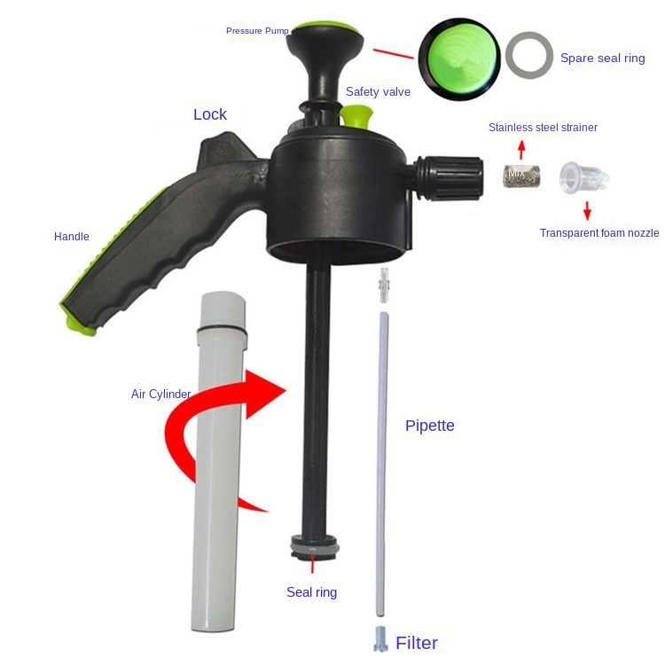 Это высококачественный профессиональный ручной компрессионный распылитель. Он будет распылять все виды пенообразующих химических продуктов. Профессиональный качественный распылитель для нанесения пенопласта и других пенопластовых продуктов, производства толстой и цепляющей пены.